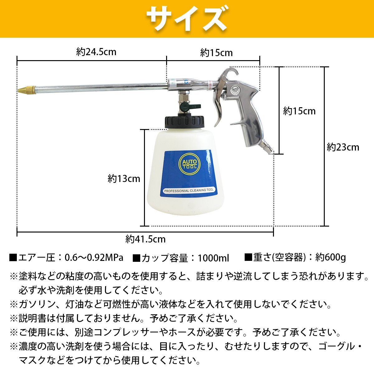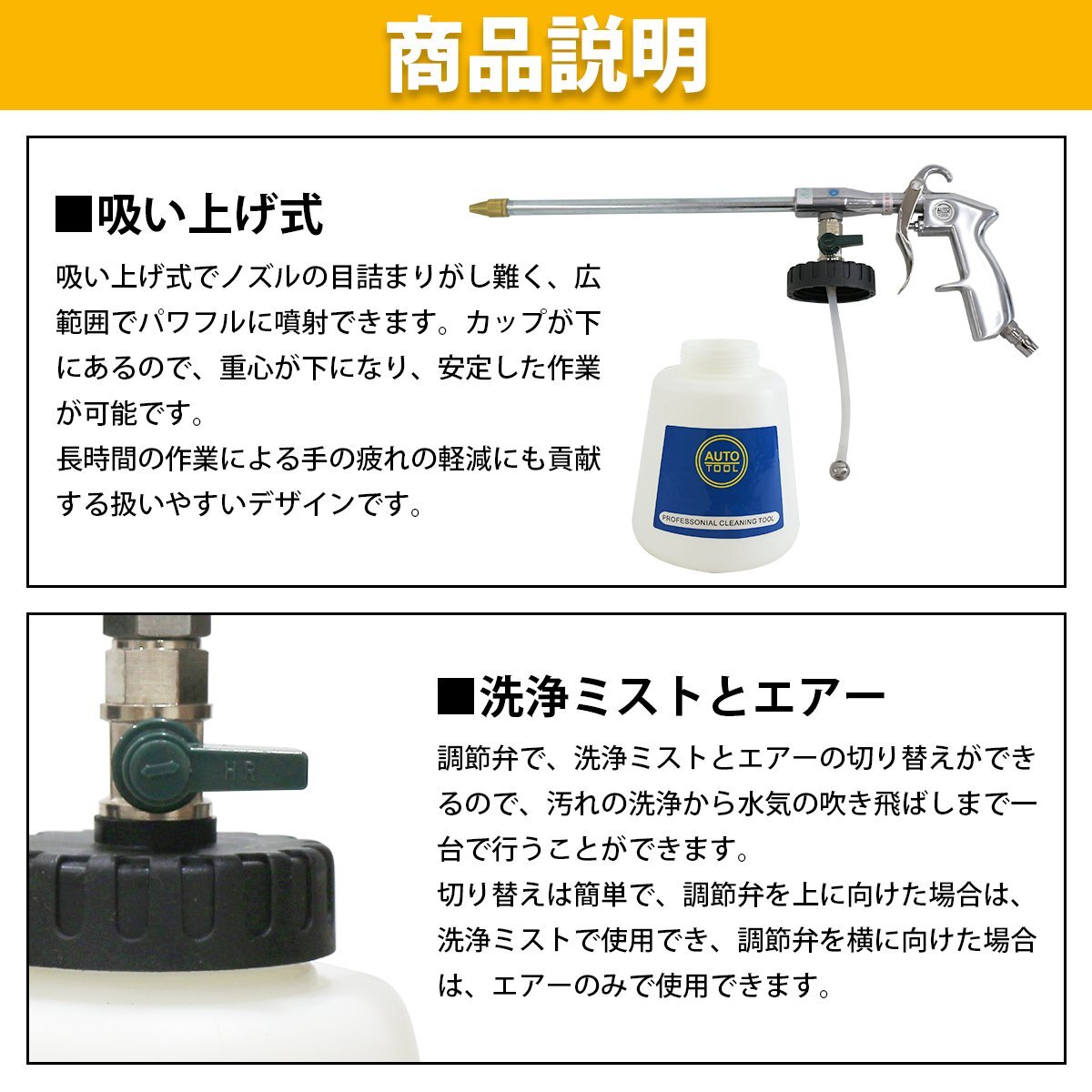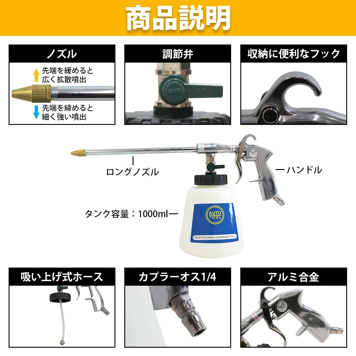ロングノズル 吸上式 洗浄 エアー ウォッシャー ガン 容量1000ml ルーム クリーナー 車内 シート エンジン エアー 洗剤塗布