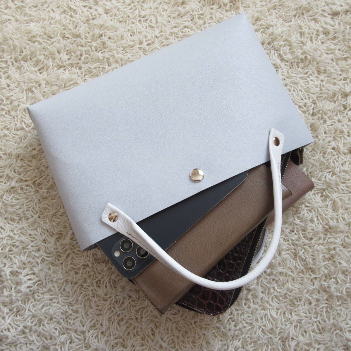 ◎ライトグレーにホワイトのハンドルを合わせた爽やかな色合いのトートです(^^/