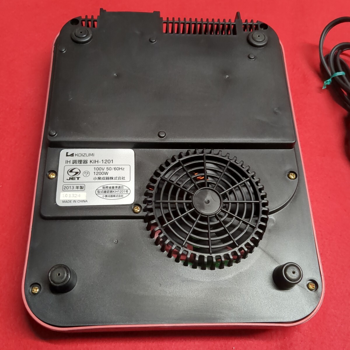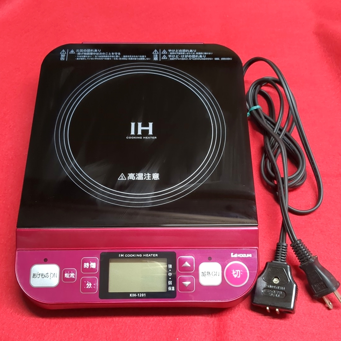 デジタル表示の操作パネルを備えた赤い卓上IH調理器。細いスレや汚れはありますが、全体的にキレイです。動作確認済みです。