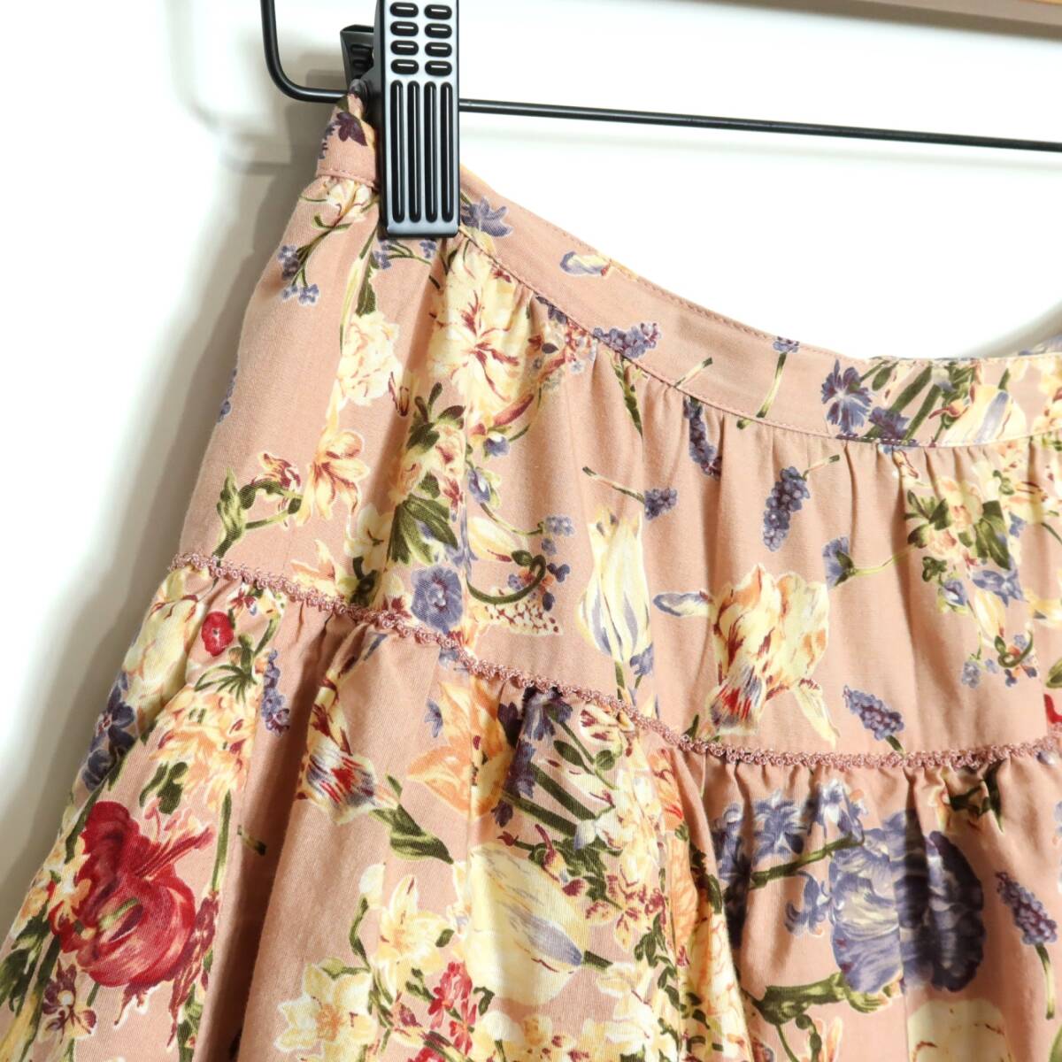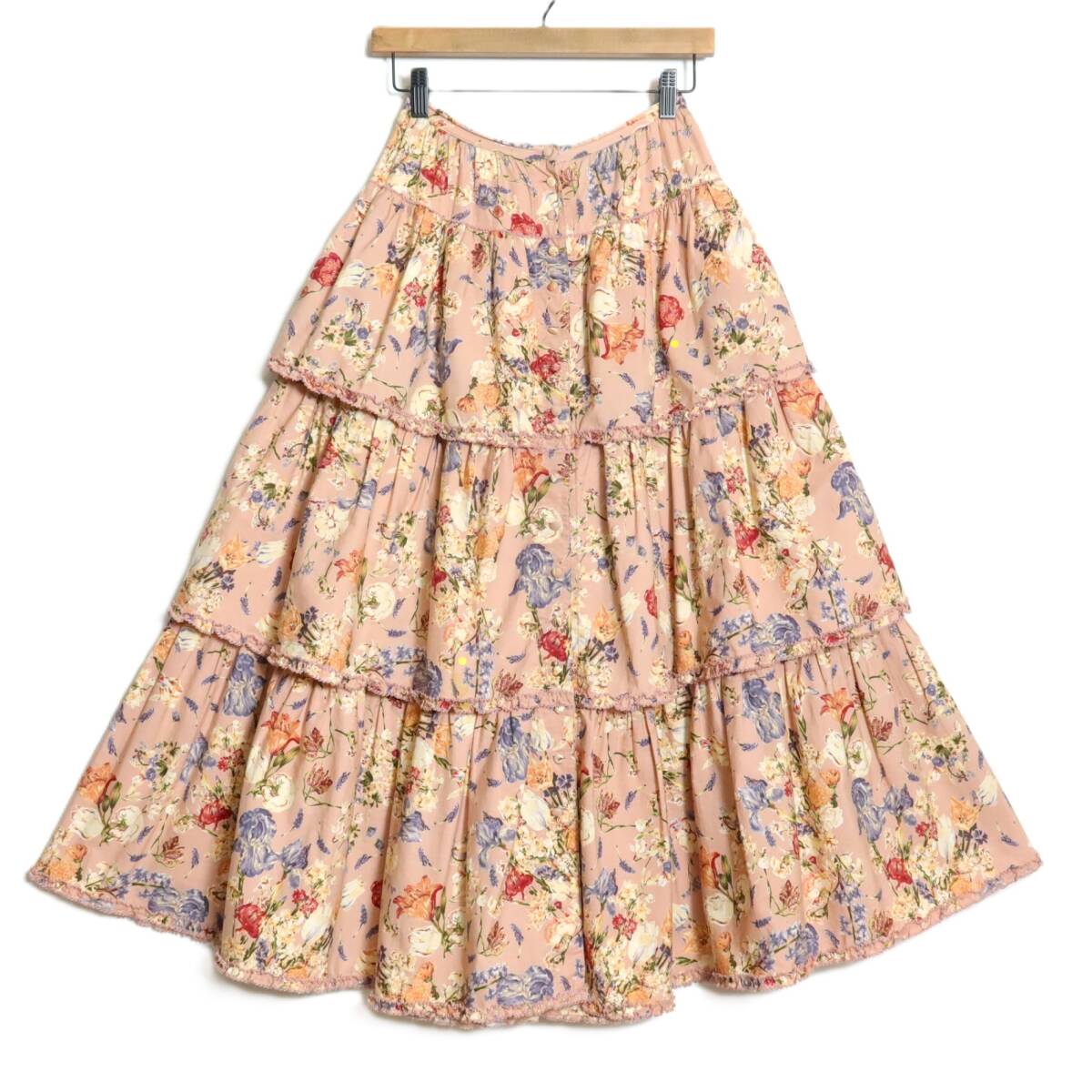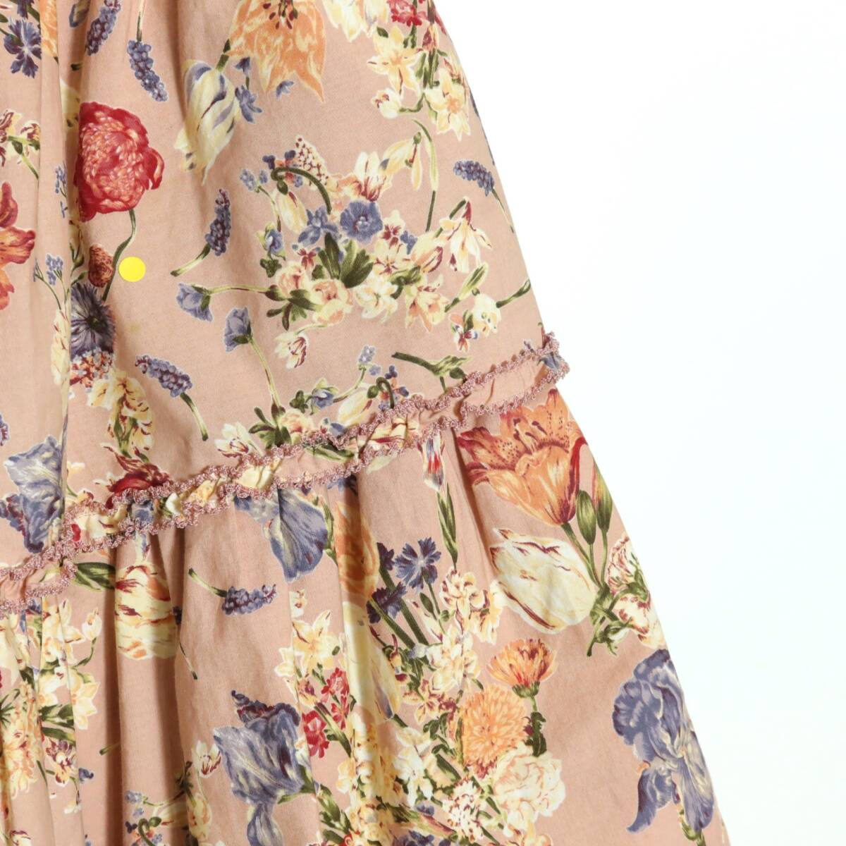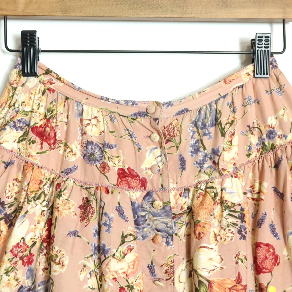 商品説明 | 【実寸約】ウエスト63丈87(cm) 【サイズ表記】 なし。実寸をご参照くださいませ。 【素材】 綿100% 【状態】普通の使用感のあるお品物 薄シミ数か所あり 【デザイン】ピンク系 フラワープリントがキュートなロングスカートです。 総かぶせ段々フリルがゴージャス! かぶせ段々の一枚一枚にピコフリル&ピコレースが付いています。 ギャザーたっぷりでボリュームのあるシルエット♪ これ一枚でもレイヤードでもロマンティックコーデに大活躍する優秀アイテム! |