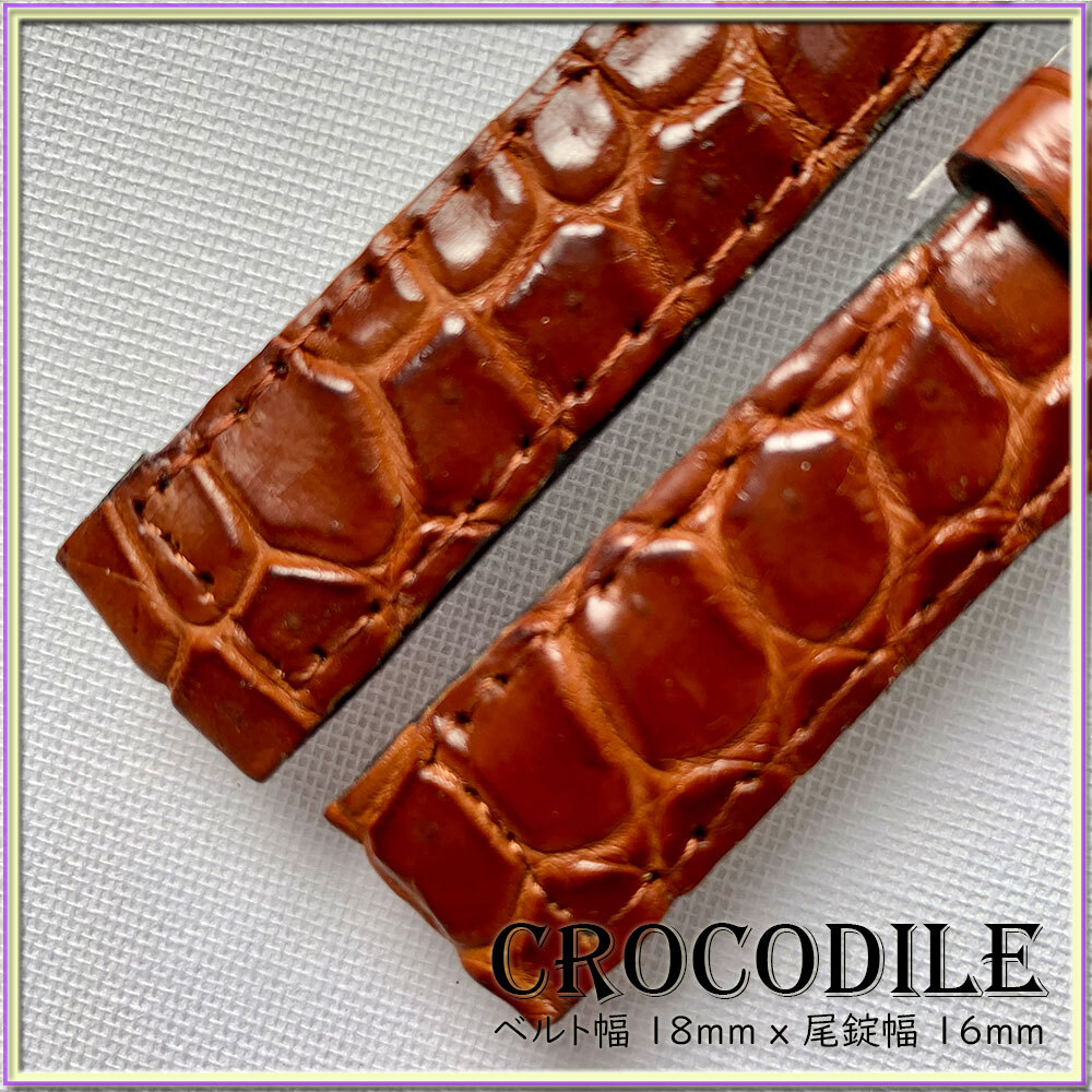 18mm 本革 クロコダイル ワニ革 時計ベルト 1点物 別注 イタリアンブラウン ITALIAN BROWN 竹符模様 クロコ 高品質 限定 金箔刻印