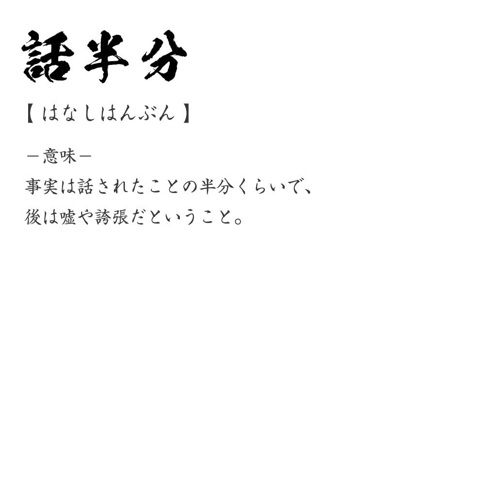 話半分 (はなしはんぶん) 書道家が書く プリント Tシャツ S M L XL XXL 120 130 140 390 G-S G-M G-L 【 三字熟語 】