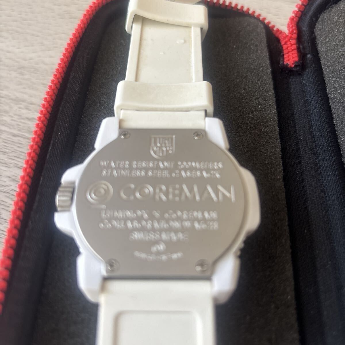 特別な仕様: 裏蓋には、レーザー彫刻によるルミノックスとコアマンのロゴマークが入っています。