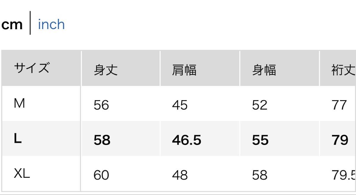 着丈56㎝(バック部分の肩位置から裾までを測定)