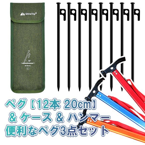 ペグ[20cm 12本] ハンマー ペグ袋 3点セット 選べるハンマーカラー | ||||