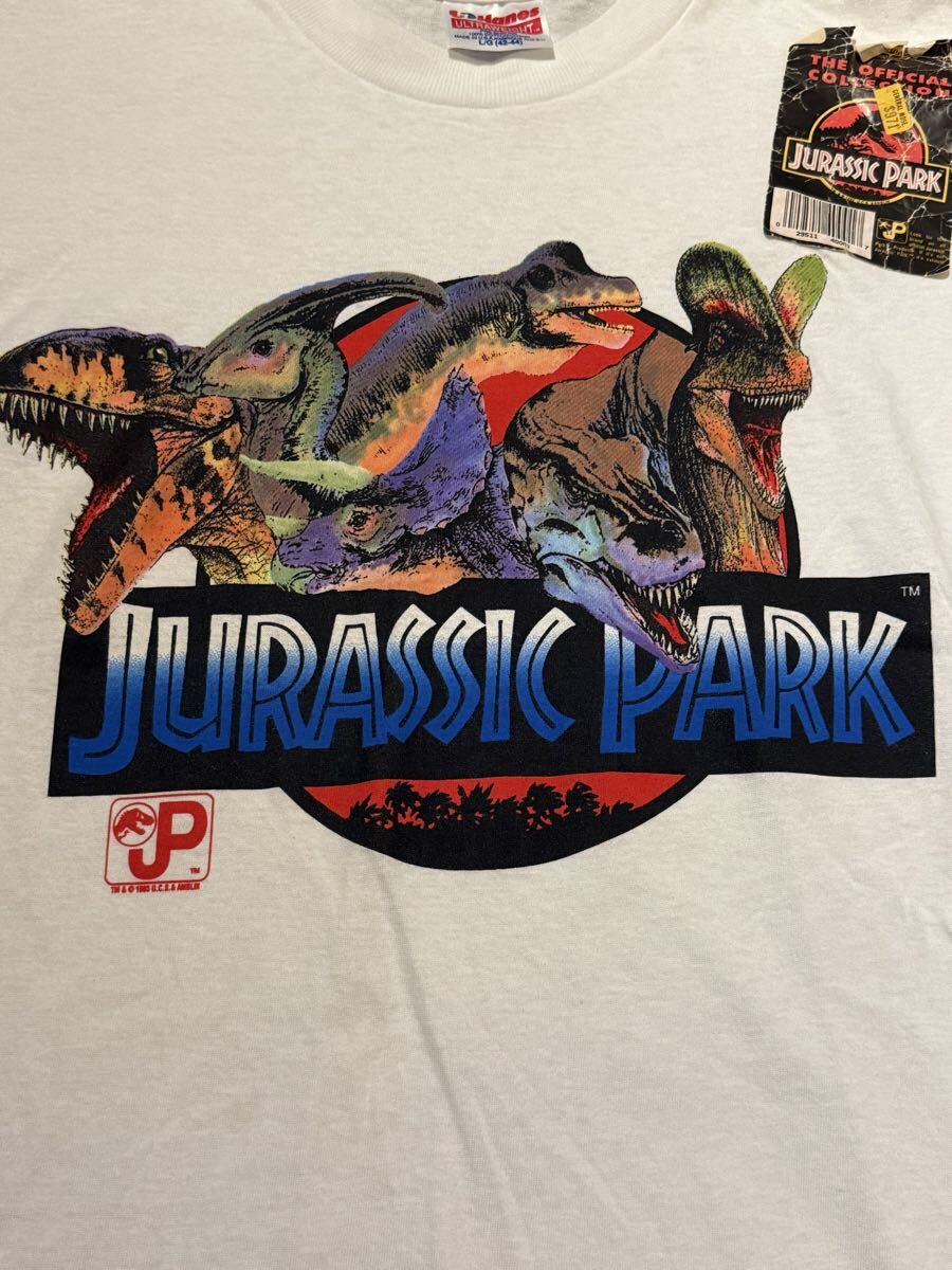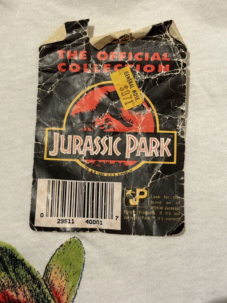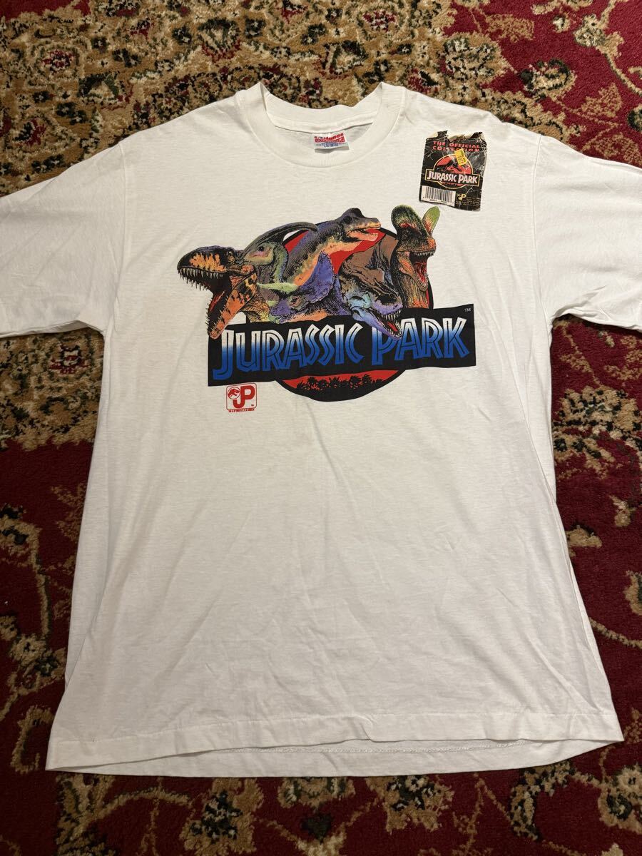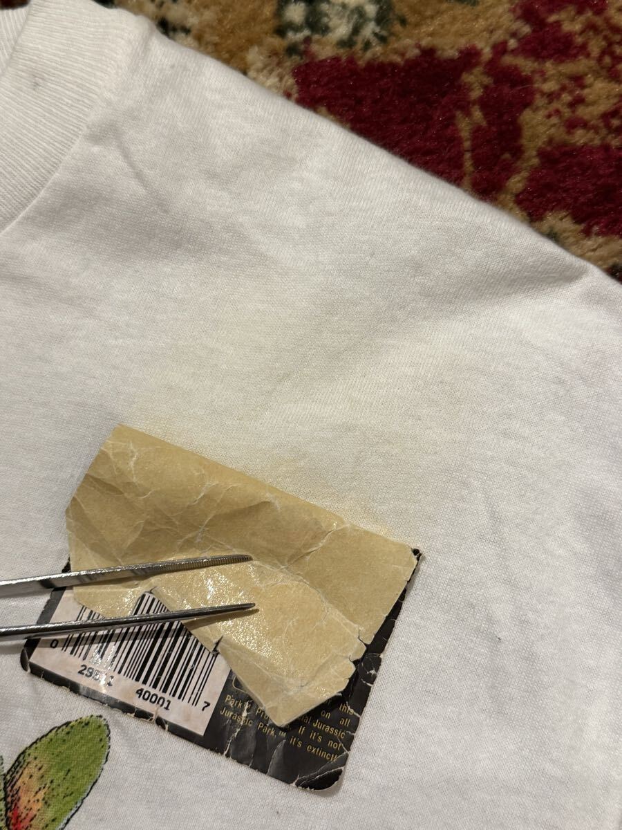 説明:90s ジュラシックパーク映画Tシャツのデッドストックです。この状態で残っているのはとても珍しいです。公式のシールが少し剥がれかけています。また、古いものなので服に少し黄色いシミみたいなものもできています。ご理解いただけると幸いです。