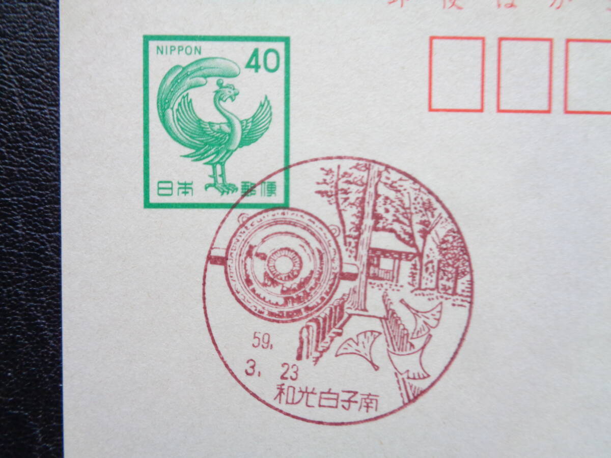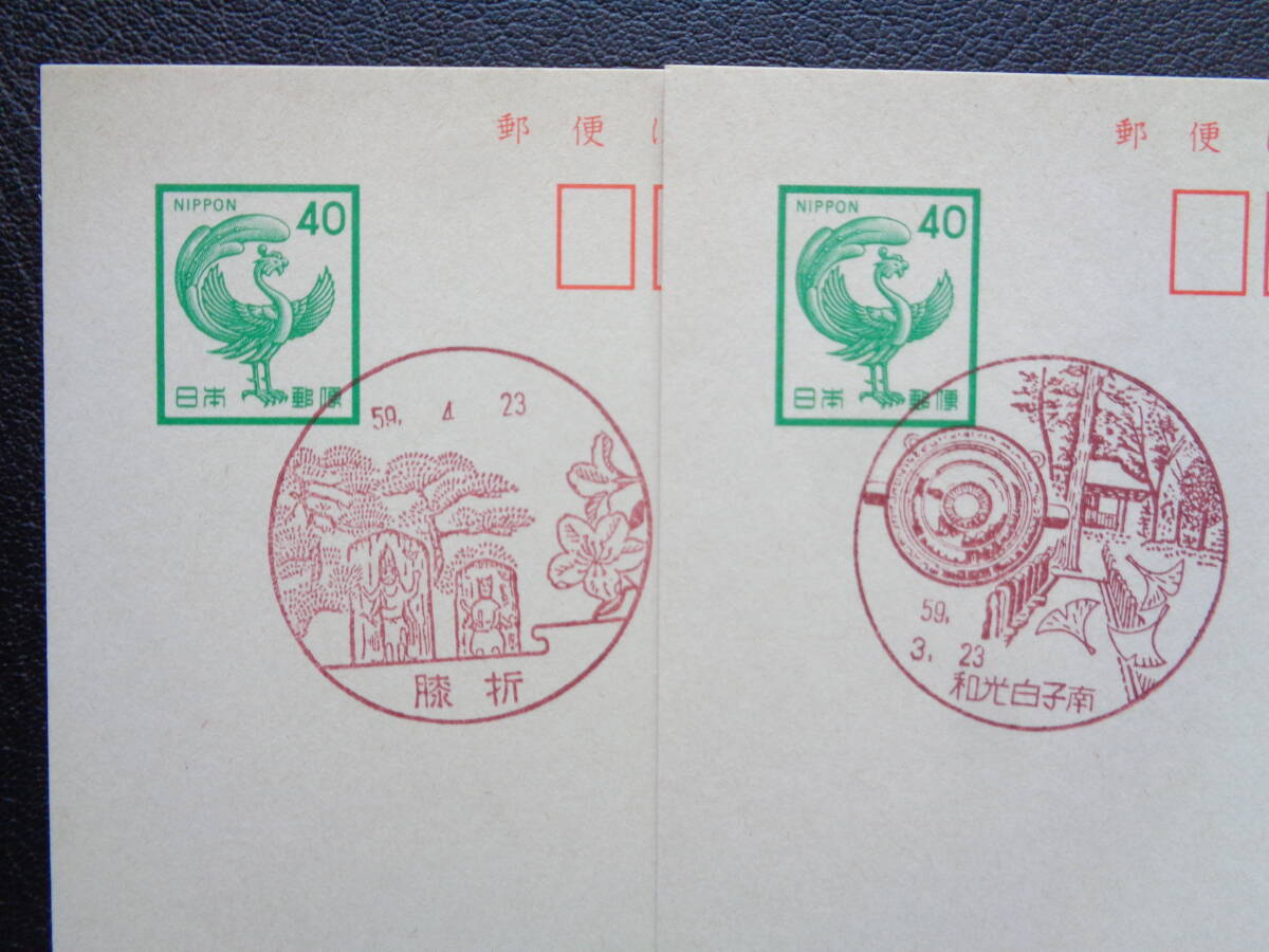 鳳凰はがき    初日印/風景印    埼玉県2枚    和光白子南/S59.3.23    膝折/S59.4.23