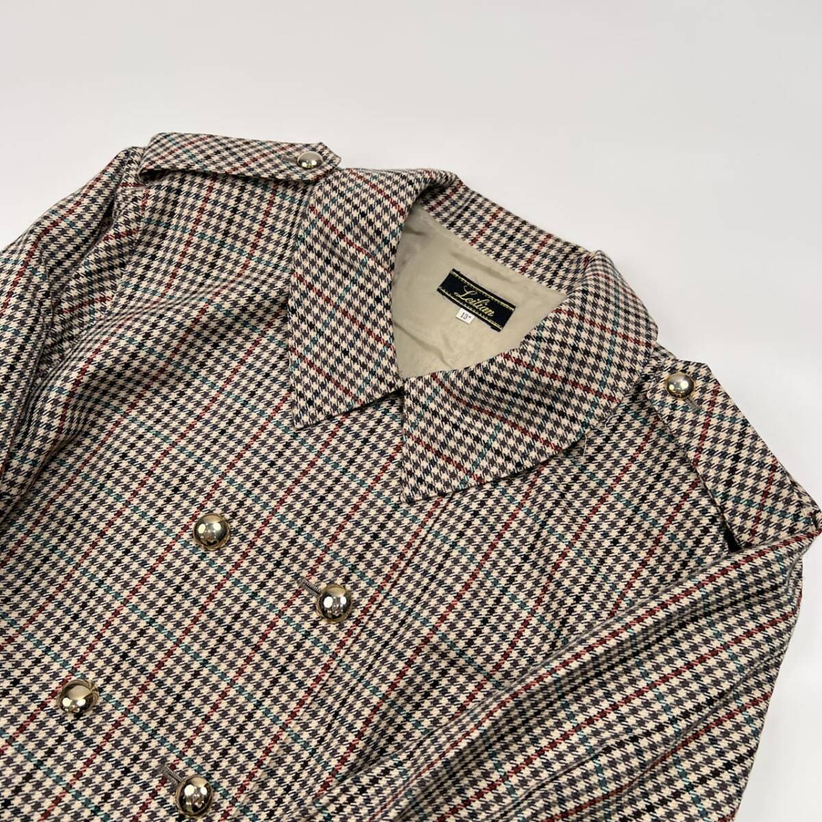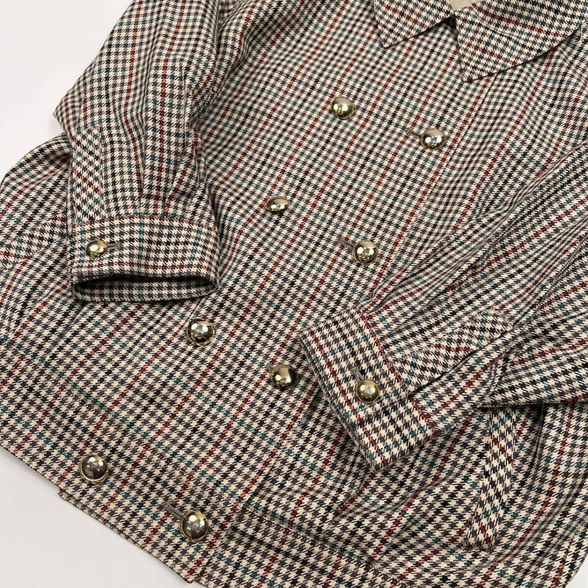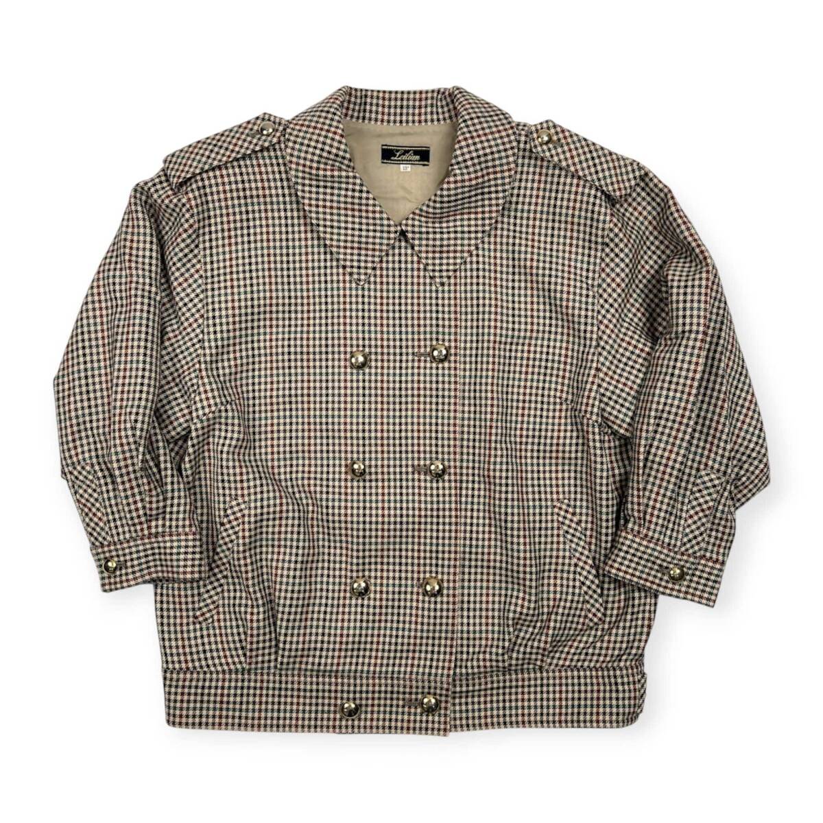 商品名 | Leilian レリアン 金系ボタン ガンクラブチェック ダブル ジャケット サイズ 13+ /ベージュ系/レディース/日本製 |