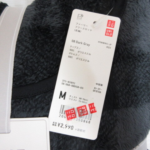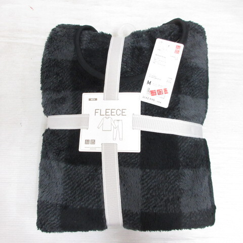 未使用品 ユニクロ UNIQLO ファーリー フリース セット M ダークグレー パジャマ ルームウェア チェック柄トップス タグ付き メンズ