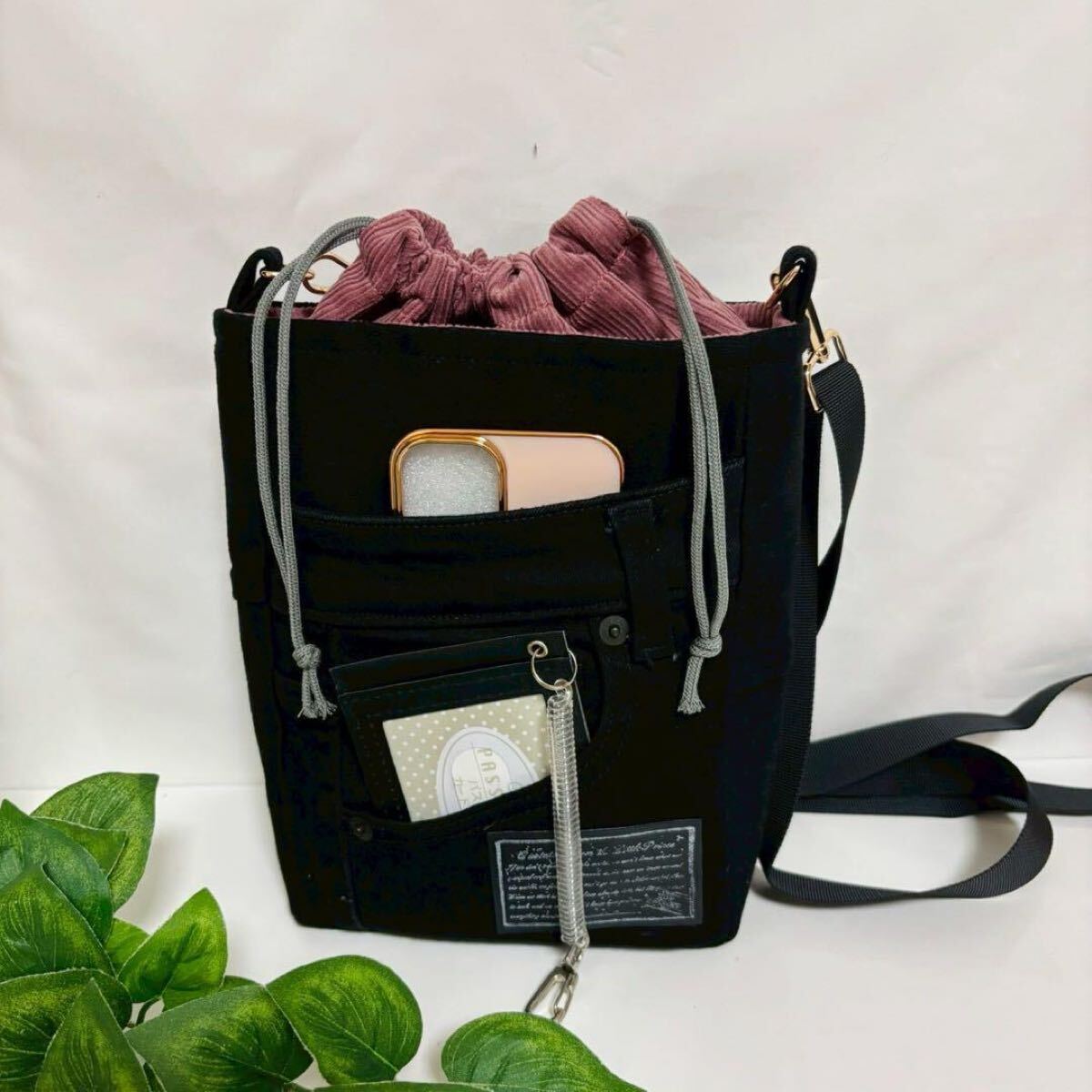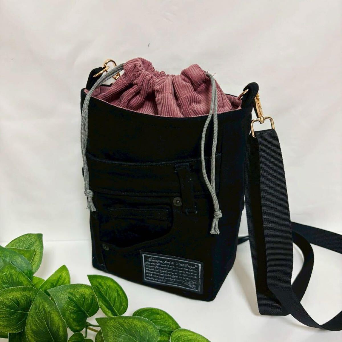 #pieceAmoバッグ #ピースアモバッグ #ハンドメイド #handmade #denim #デニムリメイク #ジーパンリメイク #ジーンズ #ジーパン #ショルダーバッグ #巾着バッグ #巾着 #パラコード #黒 #upcycle #アップサイクル #コーデュロイ