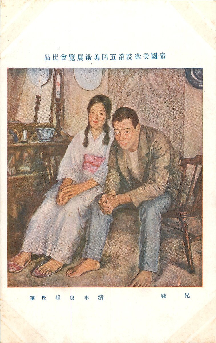 b-1880【絵葉書】◆ 美術展覧会出品 兄妹 清水良雄