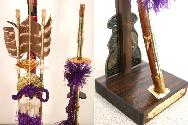 ■商品説明 5091815 メーカー/ 謹製 商品名/ 御弓太刀飾 A黄金 15号 作家/ 雲龍 作 年式/ 不明 サイズ/ 約 弓全長:47.5cm 刀全長:36.5cm 箱サイズ/ 約 幅:11cm 奥行き:49cm 高さ:11cm ■商品の状態 〇刀のさやにサビございます。 〇クリーニング済み、中古品です。 (出来る限り丁寧にクリーニングしておりますが、落としきれない汚れ、見落とし等ある場合はご了承お願いいたします。) ☆注意☆ 付属品、部品等は付属は写真にてご確認ください。 写真に写っていないものは付属いたしません。(リモコン、取説、元箱など) 写真に写っていない部分等で不明な場合は、ご質問にてお答えいたしますのでよろしくお願いいたします。 |