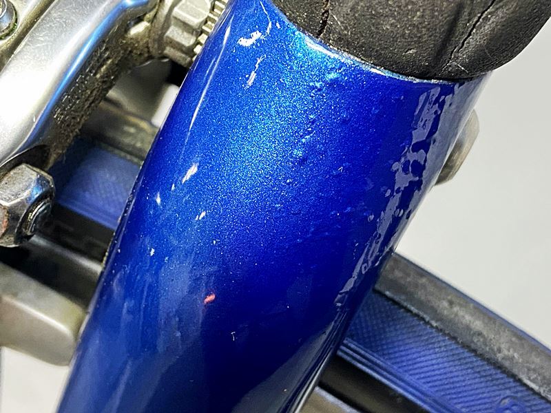 フレーム、その他外観:フォーク、フレーム、パーツ全般に傷や擦れ傷、細かいハゲ、汚れや、劣化、小サビがあり、使用感が感じられる車体です。