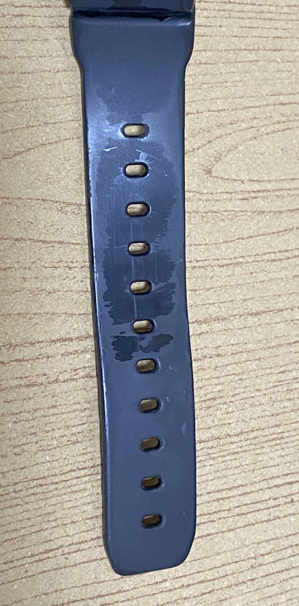 オーソドックスなG-SHOCKのマットなブラックカラーのベルトとベゼルに光沢ブラックのフィルムを貼ったタイプなので全て禿げた場合は一般的なマットブラックカラーになるので、それほど違和感はないかと思いますが、そういう状態なのでご理解の上で入札落札ください。