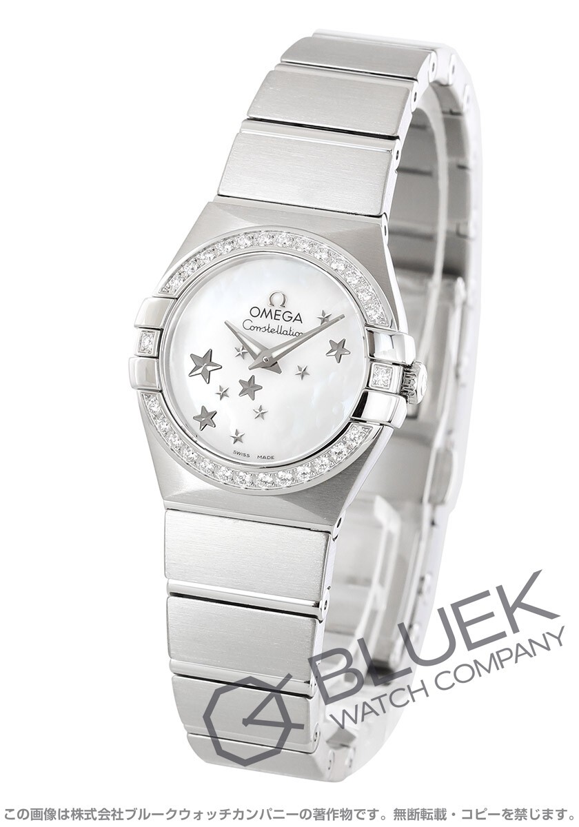 100m防水ケース&ベゼルを両サイドから掴んだ「4つの爪」が特徴のコンステレーションは、オメガを代表するラグジュアリーモデル。どんな装いにもマッチするボディ&ブレス一体型フォルムが手元をエレガントに彩ります。中でも女性らしい24ミリ小ぶりなケースのベゼルに28粒のダイヤモンド(0.34ct)煌めくこのモデルは、大小の星がちりばめられた爽やかなホワイトシェルダイヤルも魅力。全体のツヤを抑えたブラッシュ仕上げに4つの爪の光沢とダイヤモンドが手元でキラリと光を反射させて美しく、幅広い装いにマッチして洗練された装いを完成させます。 |
