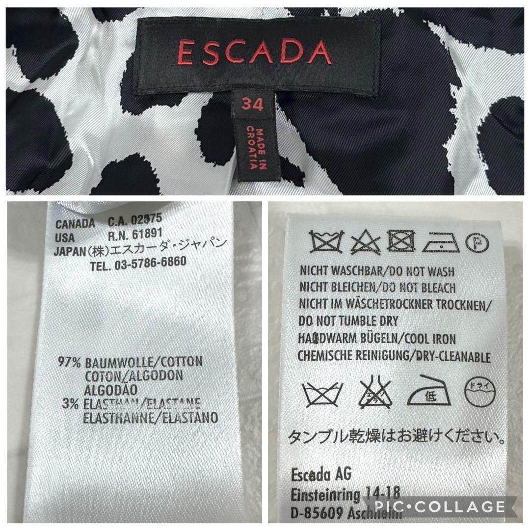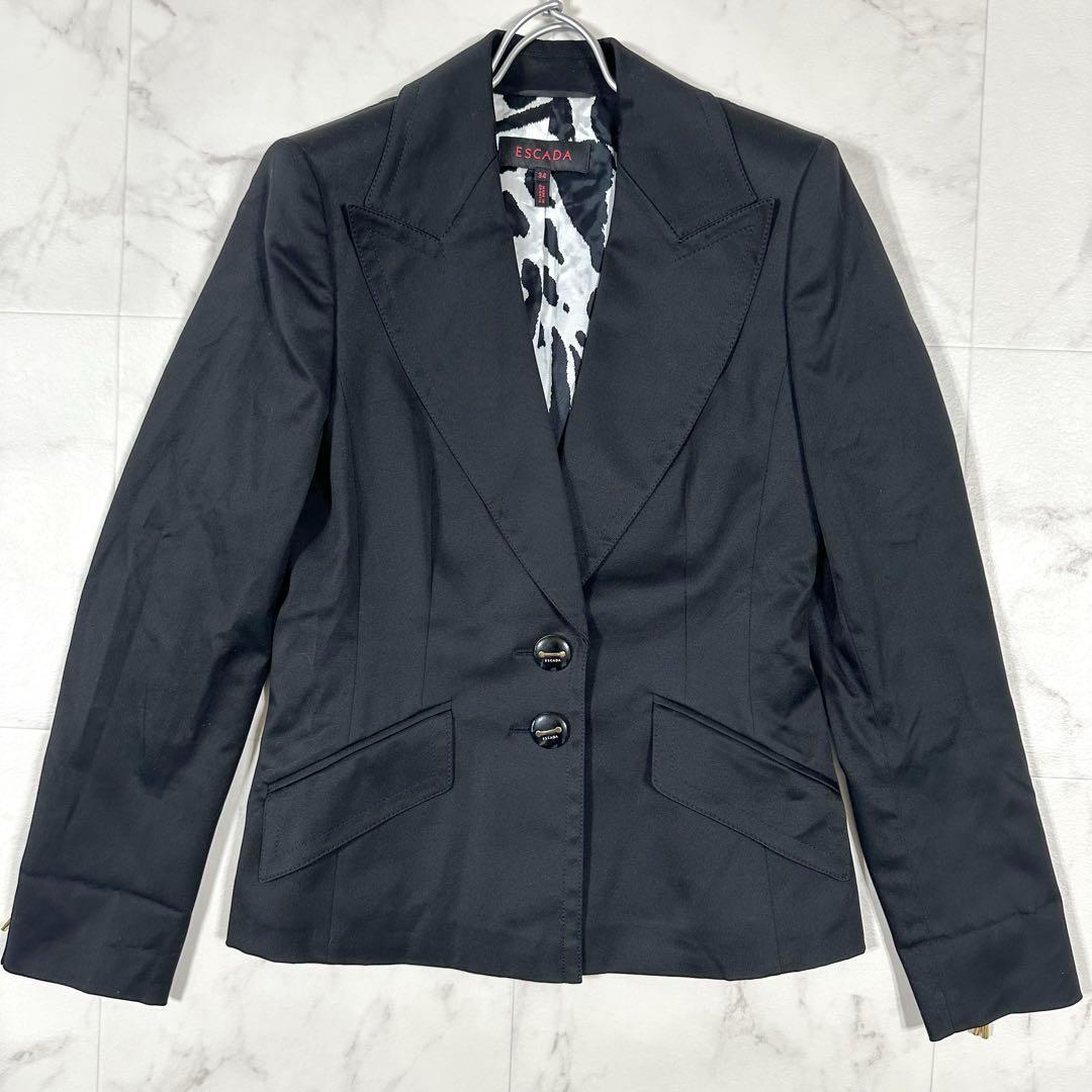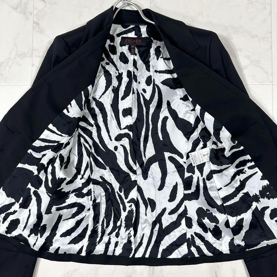 【美品】ESCADA エスカーダ テーラードジャケット 裏地ゼブラ柄 ストレッチ入り ブラック 34(S相当)