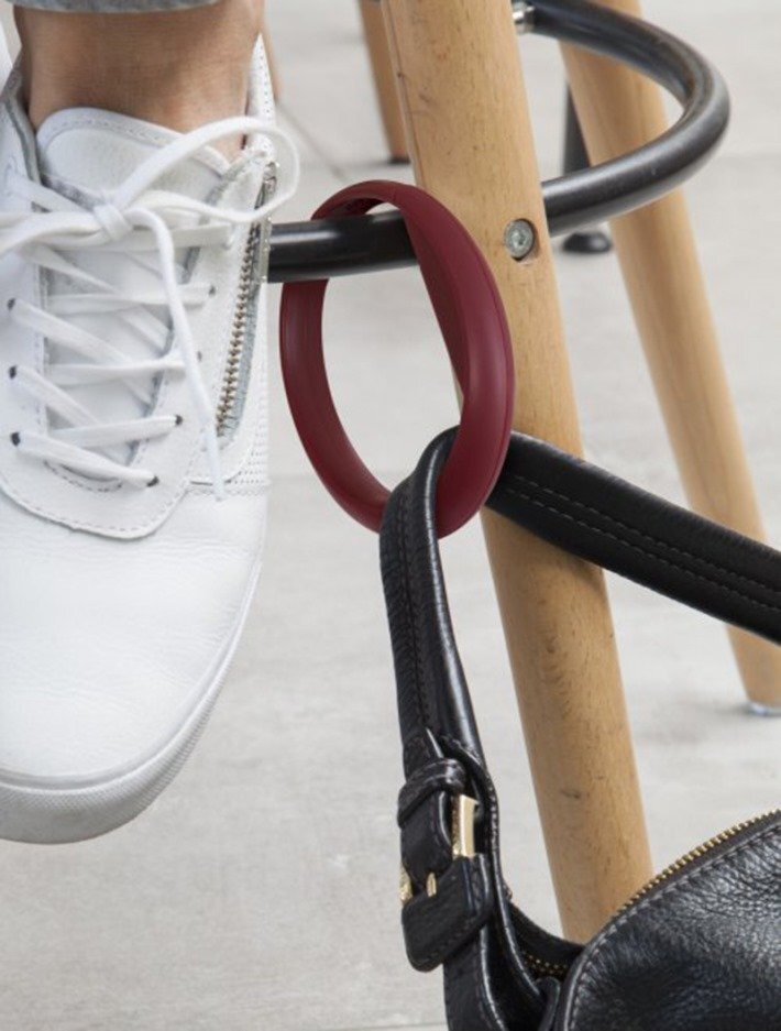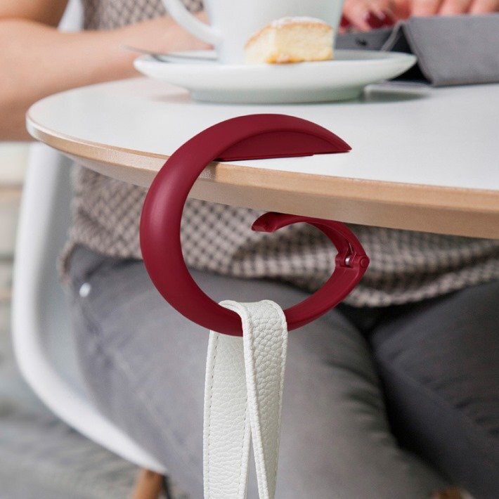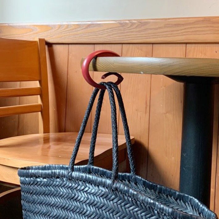 机の縁に挟めばバッグを床に置くことなく、キープできます。