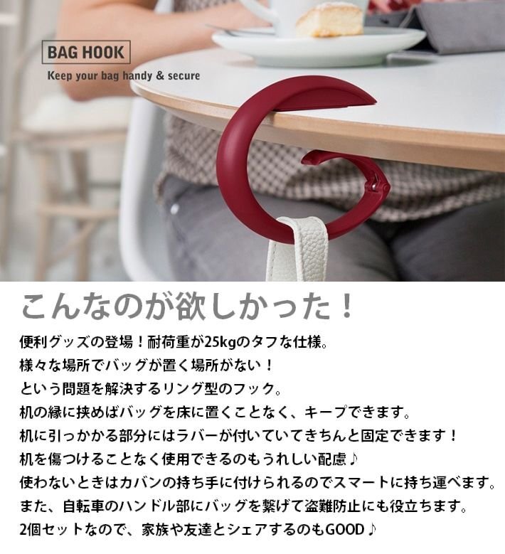 バッグフック バッグハンガー デスク 便利 おしゃれ グッズ アイデア フック 机 テーブル カバン掛け 7987616 2個セット ブラック/ワイン 新品 1円 スタート