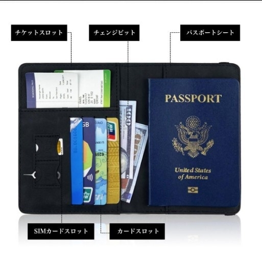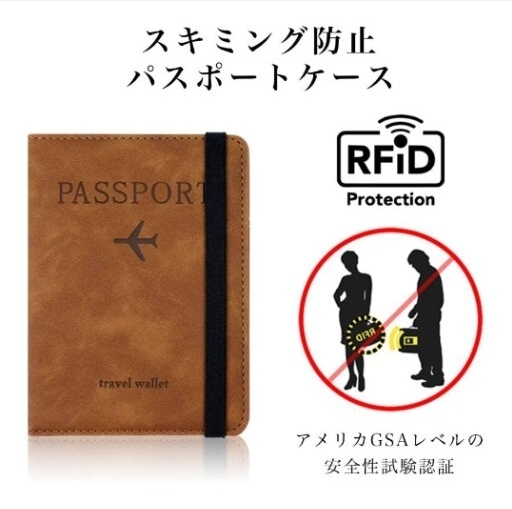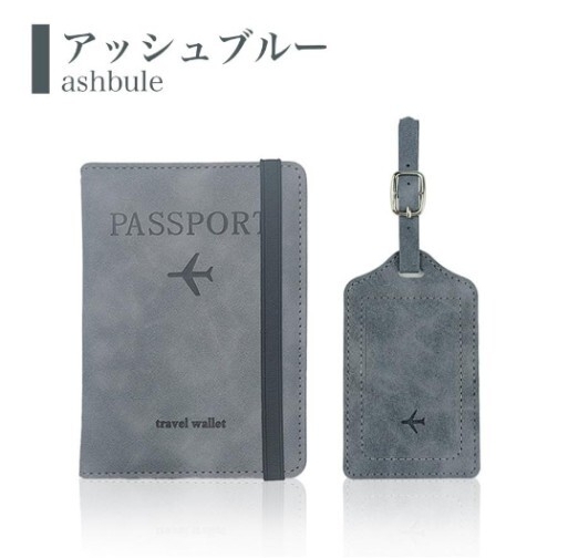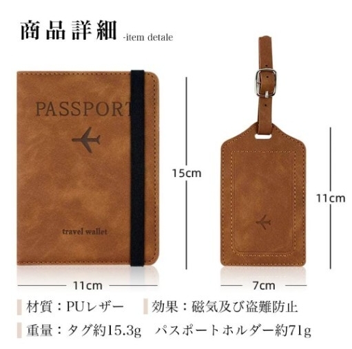 スキミング防止機能付きPUレザーパスポートケース+トラベルタグ付き。