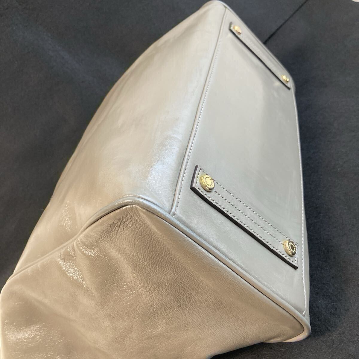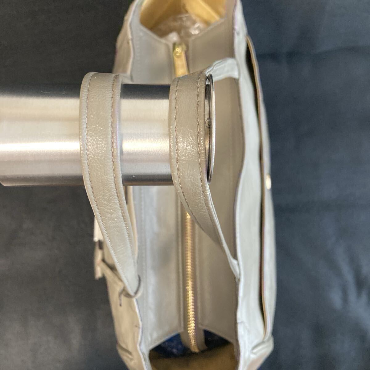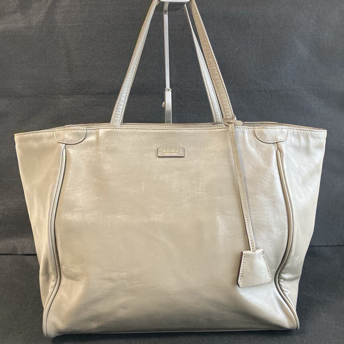 ◆美品【A.D.M.J】アクセソワドゥマドモワゼル レザートートバッグ フルレザー ゴールドメタルロゴ ロゴマーク キーホルダーチャーム グレー系 大容量