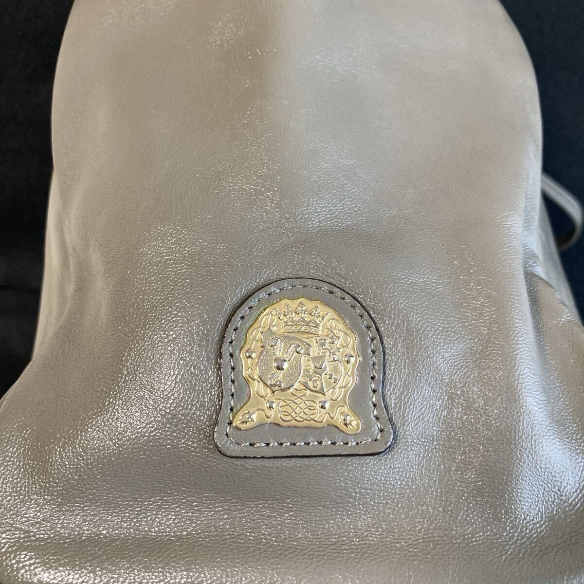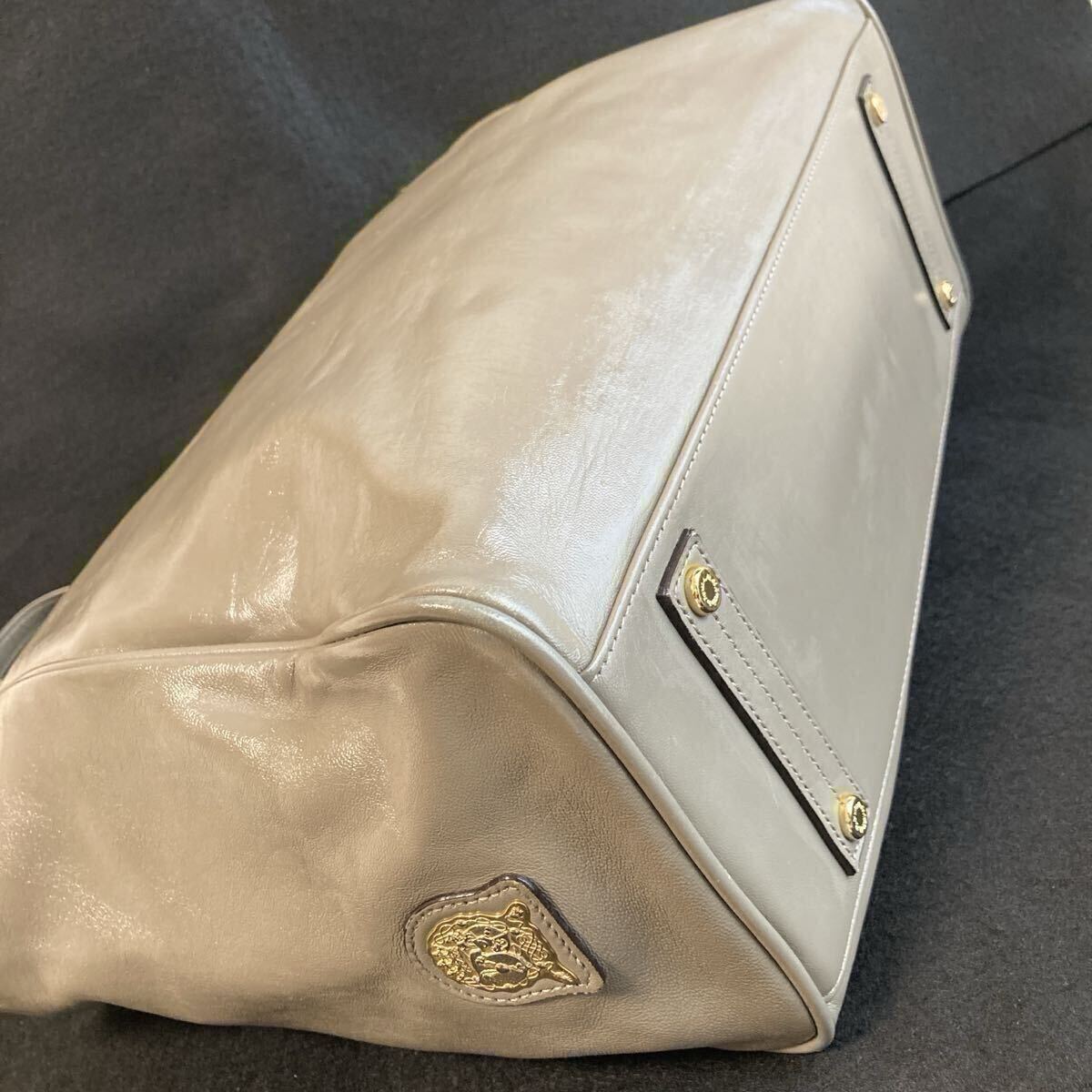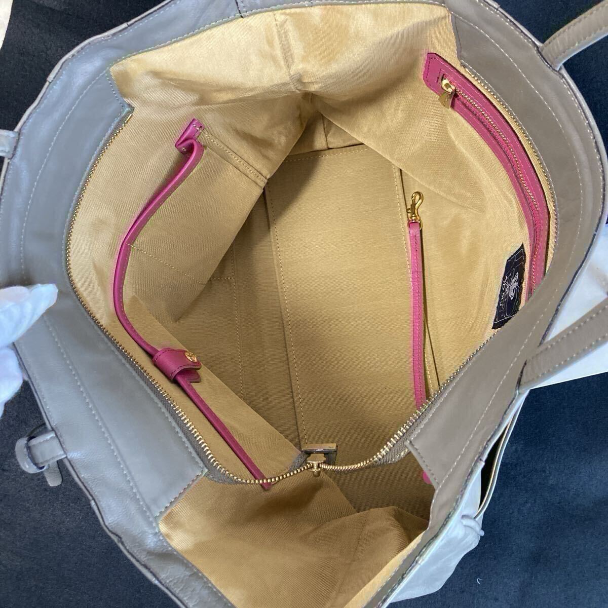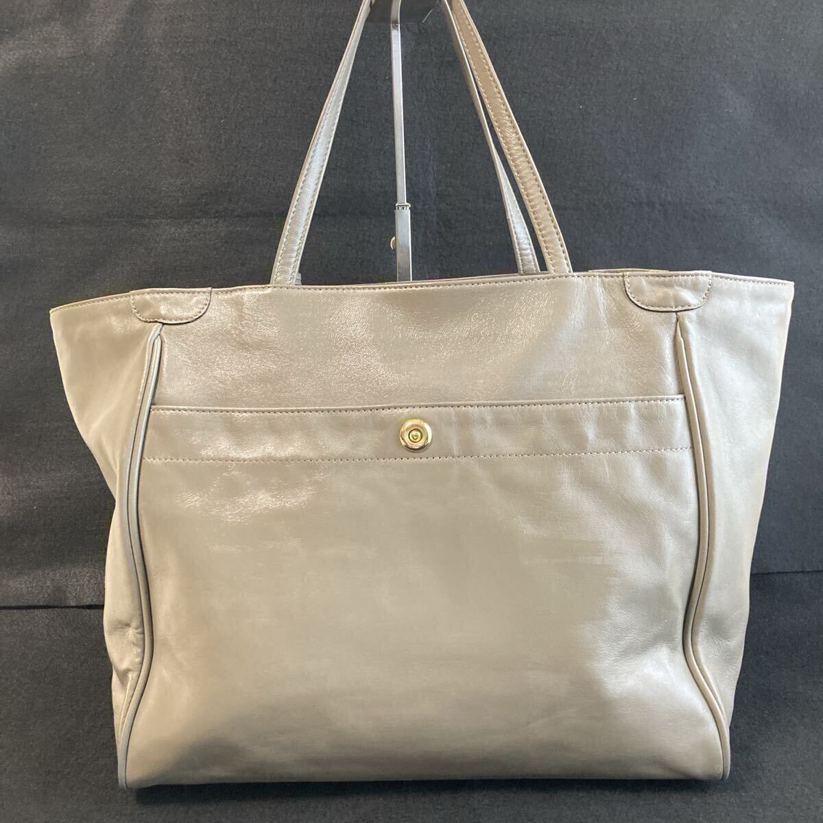 ◆美品【A.D.M.J】アクセソワドゥマドモワゼル レザートートバッグ フルレザー ゴールドメタルロゴ ロゴマーク キーホルダーチャーム グレー系 大容量