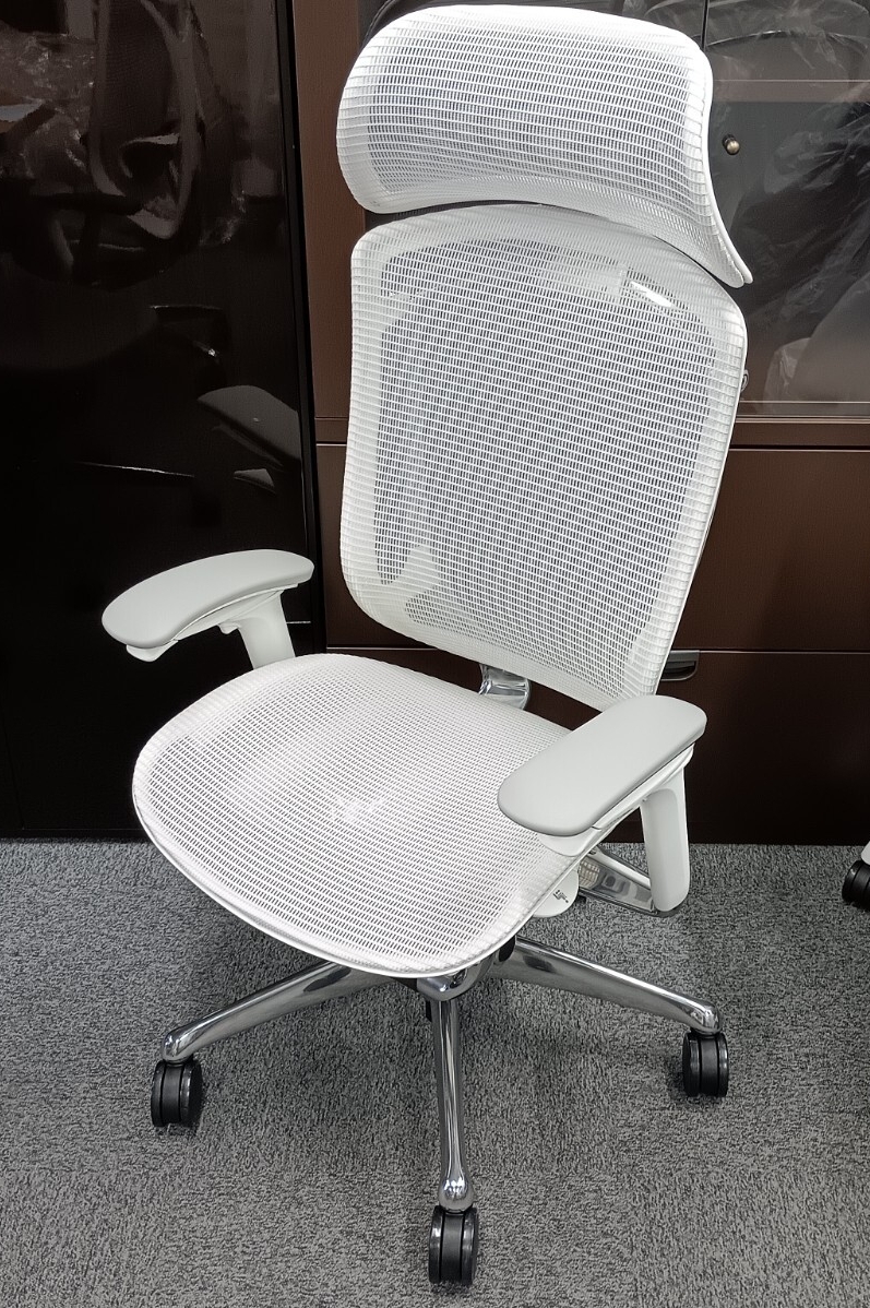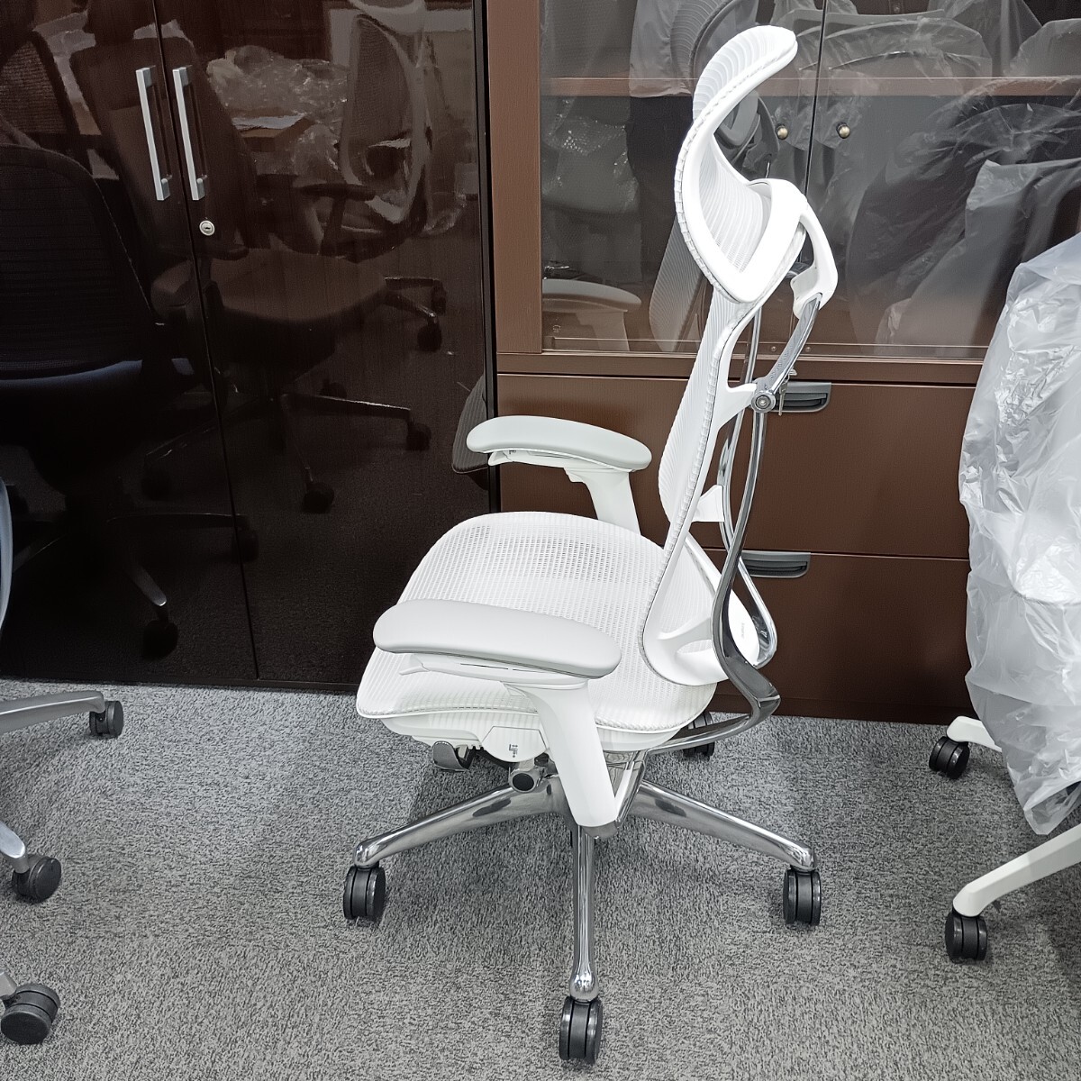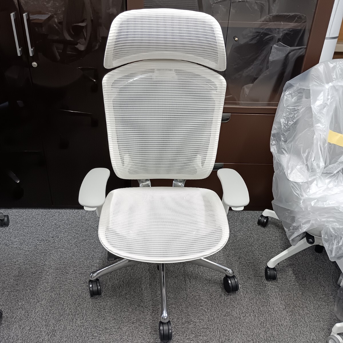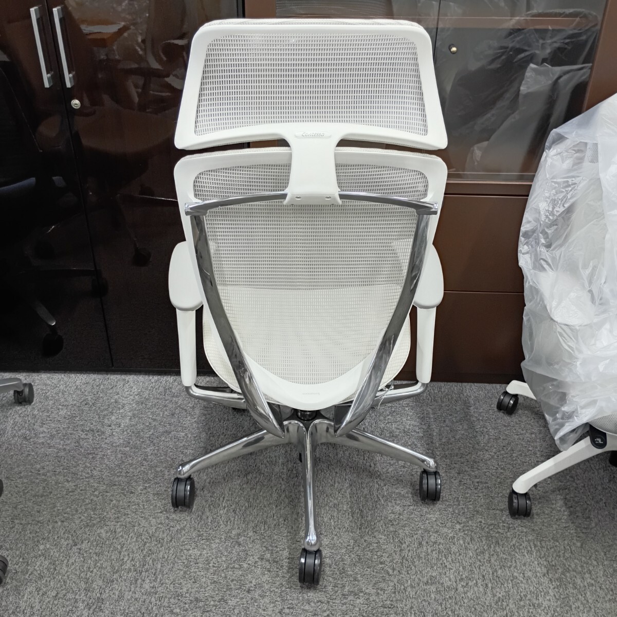 【展示品・2025年製】オカムラ コンテッサセコンダ エクストラハイバック 固定ヘッドレスト 可動肘 ホワイト オフィスチェア