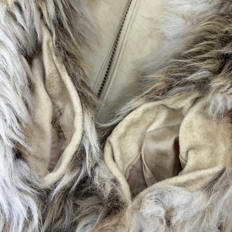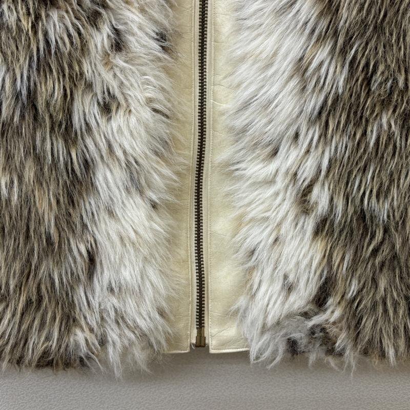古着 Russel Taylor ラッセルテイラー ノーカラー ジップアップ ファー ジャケット -