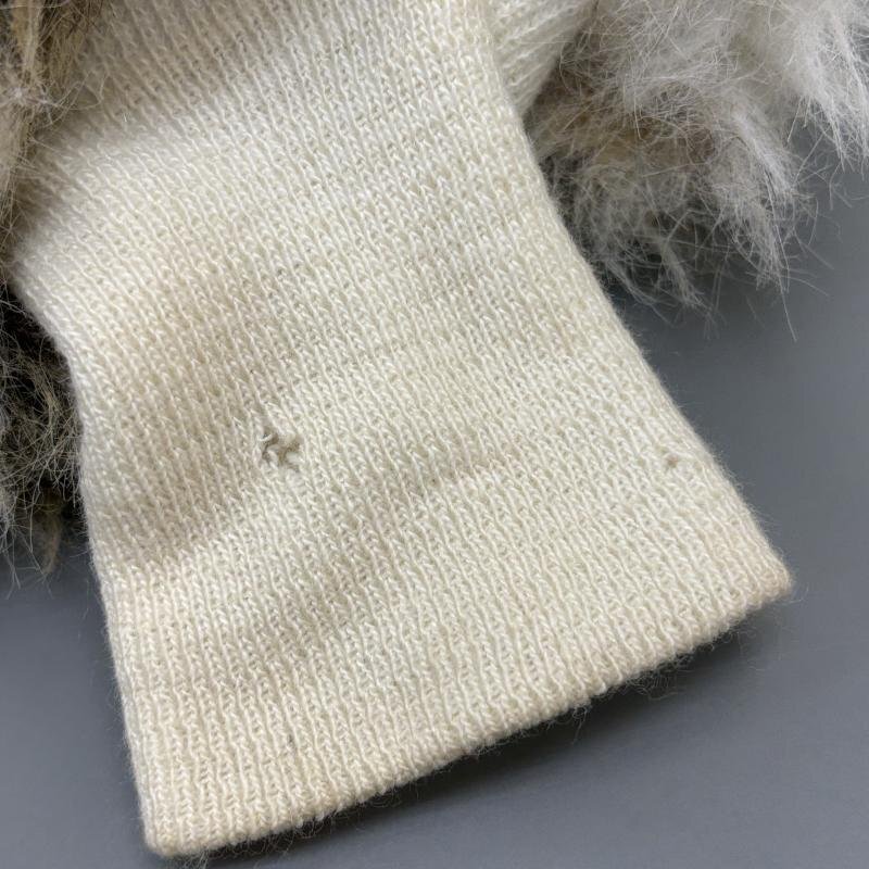 サイズ不明。全体に汚れあり。袖リブにダメージ。右脇に穴あり。裏地の背中辺りにステッチほつれあり。