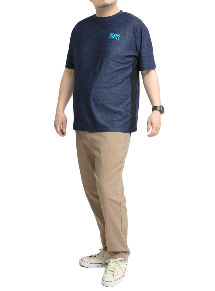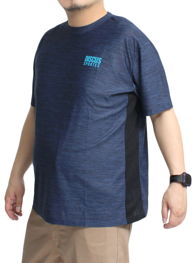 商品名 | 【新品】 5L 杢ネイビー DISCUS ディスカス 半袖 Tシャツ メンズ 大きいサイズ カチオン ドライ 吸汗速乾 抗菌 防臭 ロゴ プリント クルーネック カットソー |