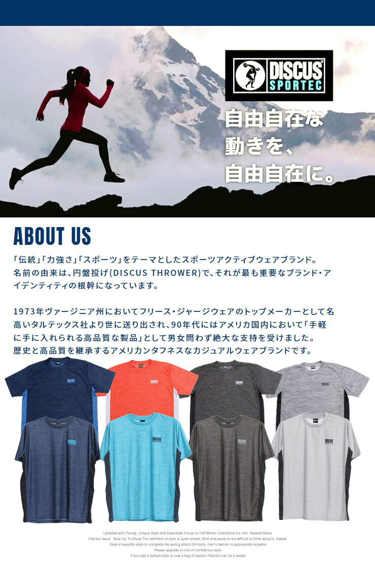 商品説明 | DISCUSより暑い時季におすすめの汗を吸ってもすぐに乾かすカチオンメランジ素材を使用した、吸汗速乾性のあるドライ機能付き半袖Tシャツが入荷しました。 |