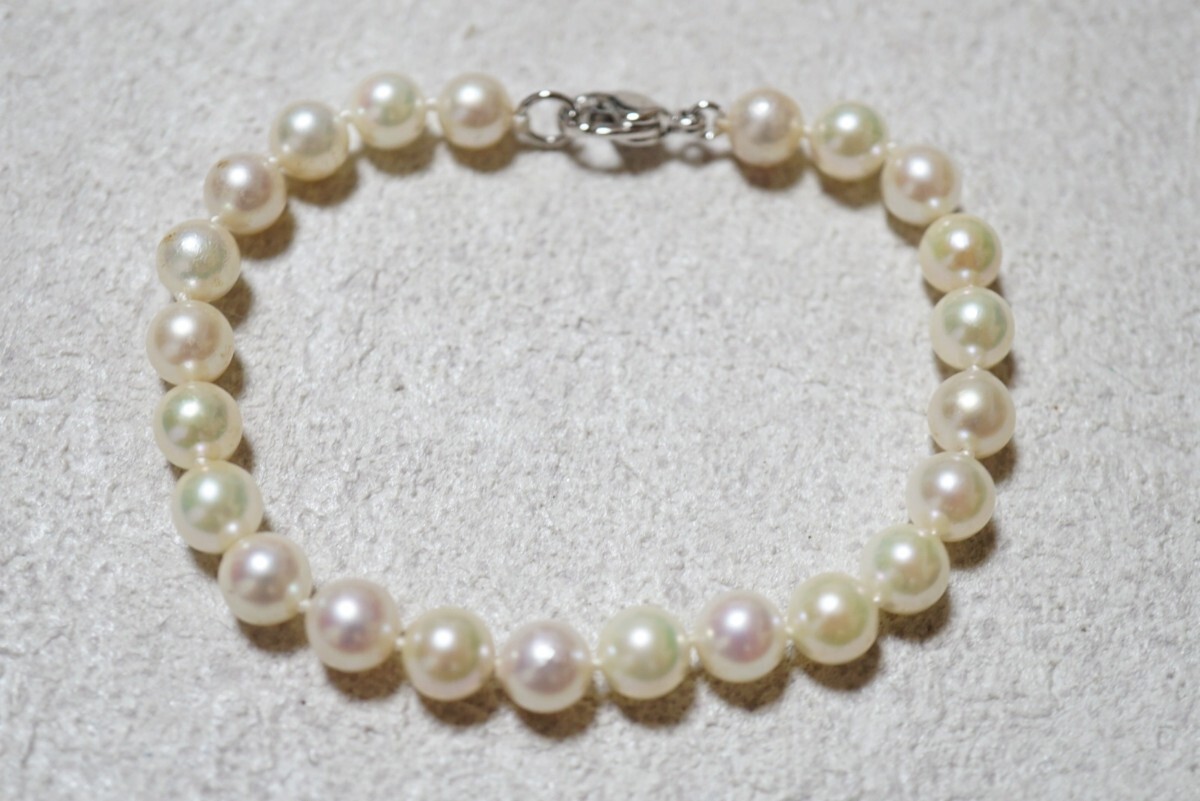 100 アコヤ真珠 6.4㎜ 本真珠 パール ブレスレット ヴィンテージ アクセサリー SILVER 925刻印 冠婚葬祭 あこや 装飾品