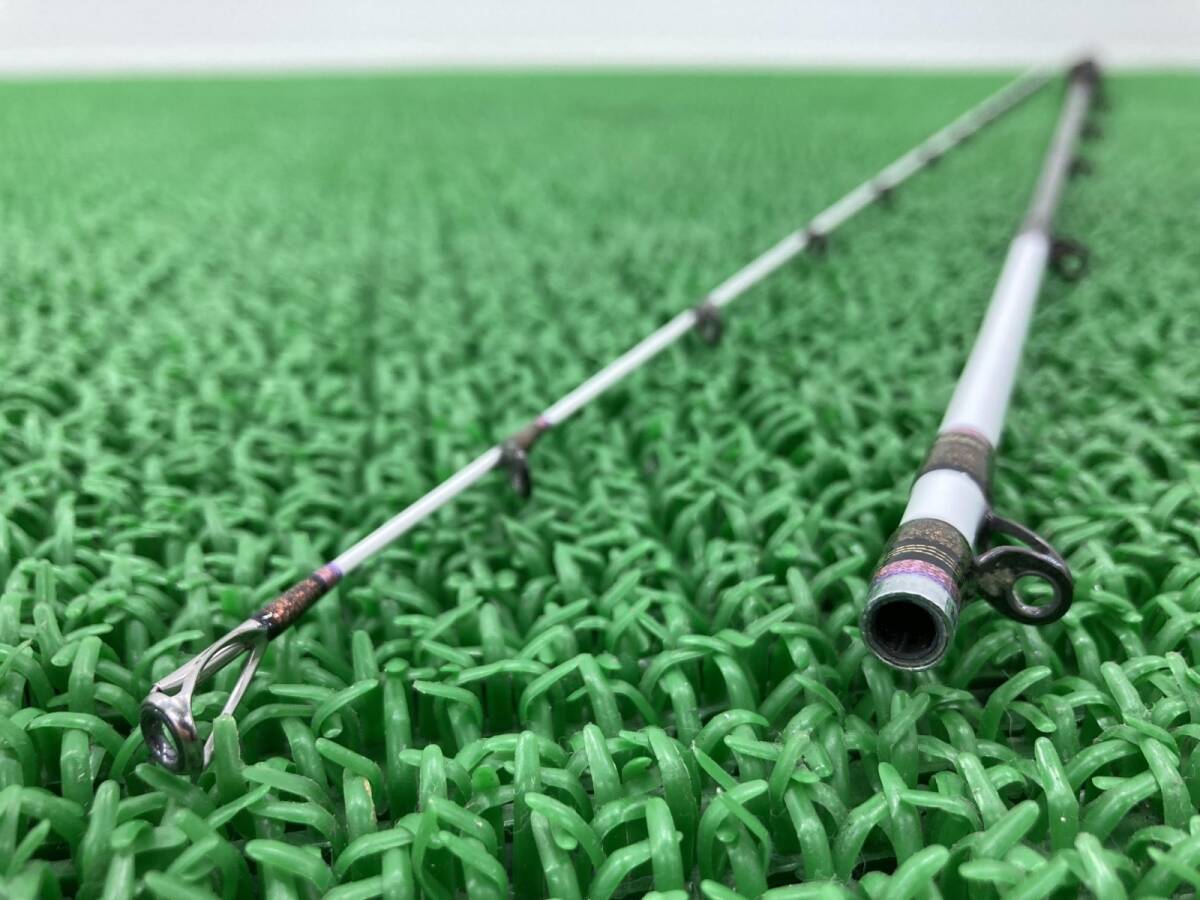 こちらの商品、写真でご覧の通り全体的にはキレイな印象を受ける商品となっております。 海水にて数回使用しましたが、釣行後にメンテナンス行っております。 目視ではガイドの割れや歪みはございません。 ヤフオク・ヤフーショッピング上ではなかなか出てこない珍しい品です! お探しの方、この機会にぜひどうぞ! 全長:2.07m 継数:2本 仕舞:139cm 自重:135g 先径/元径:1.5/8.4mm 錘負荷:20〜100g カーボン含有率:89% しなやかさと操作性は更なるステージへ。しなやかさと操作性を追及してきたリーオマスター真鯛シリーズが最高峰EXとして生まれ変わった。ダイワカーボンテクノロジーの更なる進化と、ゼロベースから構造を見直し、贅肉を徹底的に排除することにより軽量化を実現。同時にVジョイントとX45というダイワ独自の技術を採用することで、真鯛釣りに求められる柔軟性とパワーという相反する性能を実現。『AGS』は更なる進化を遂げ、軽量・高剛性・トラブルレスのRタイプフレームと、薄肉・軽量のCリングNリングを搭載。快適な釣りをサポートする。 参考データ ●メーカー:ダイワ ●車名:リーオマスター真鯛EX/AGS/S-270 ●刻印:RM真鯛 EX AGS S-270 ※お届けする商品は写真に写っている物が全てです。