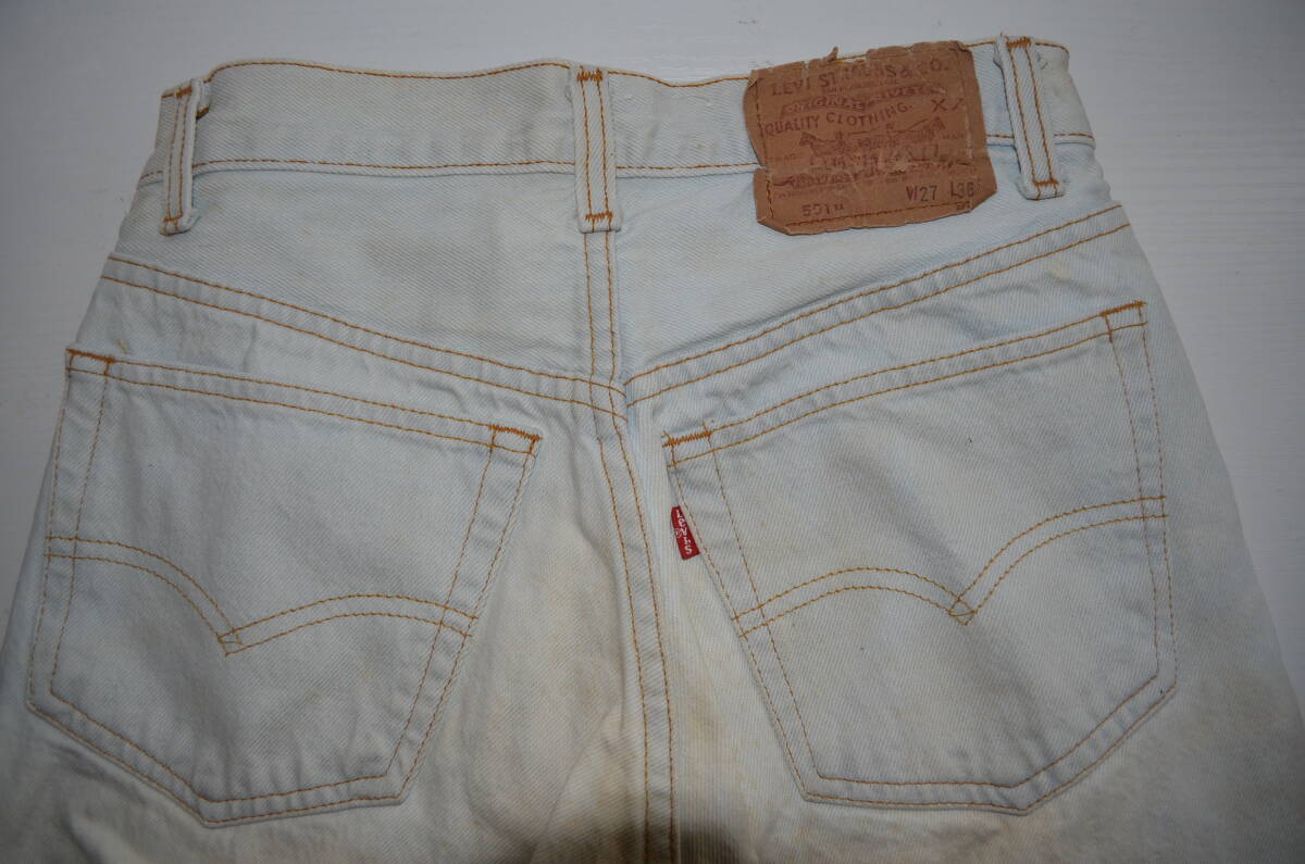 USA製 Levi’s 501 Shrink-to-Fit 555 スモール small e ヴィンテージ デニム 色落ち薄ブル W27 90sリーバイス 古着 アメカジ ⑥