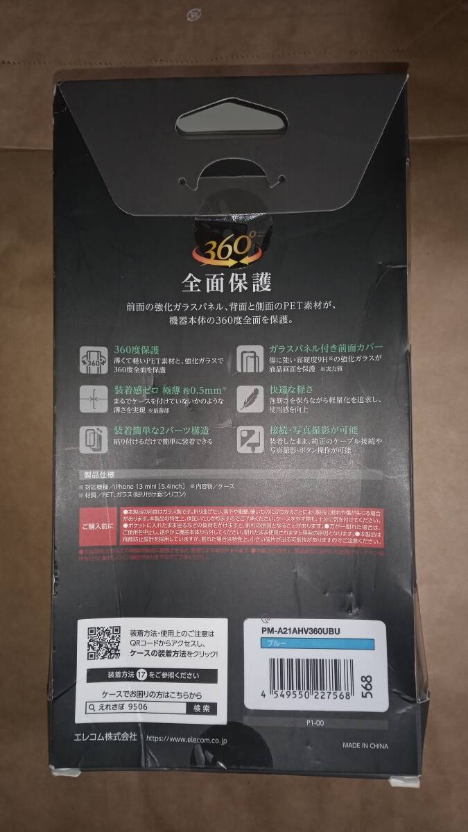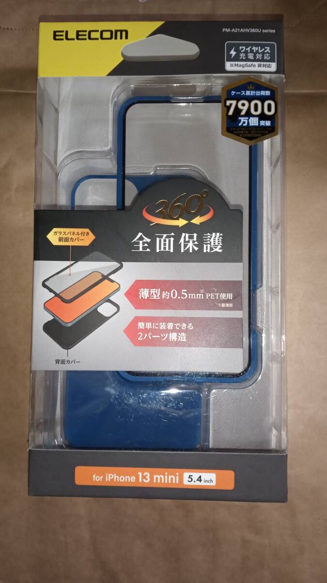 ELECOM iPhone 13 mini ハイブリッドケース 360度保護 薄型 ブルー 前面強化ガラスと背面・側面PET素材で端末を360度全面保護 定形外290~