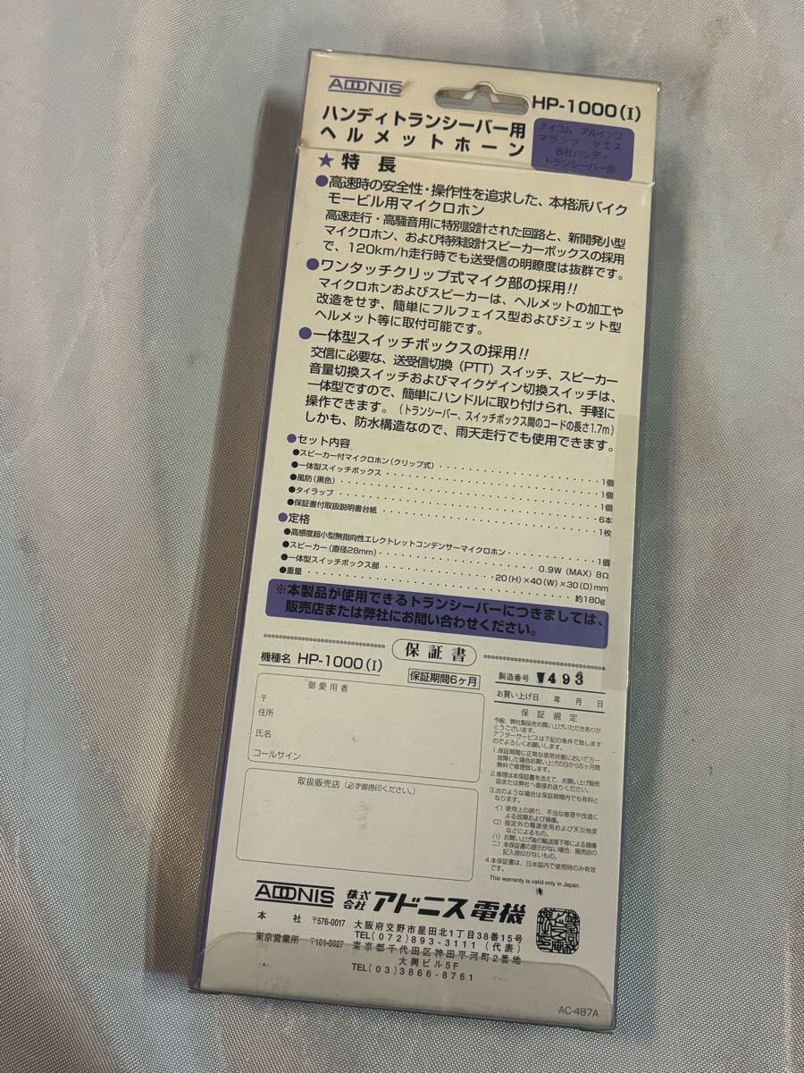 ☆5239☆ 未使用 ☆ADONISアドニス HP-1000 ハンディトランシーバー専用ヘルメットホーン |
