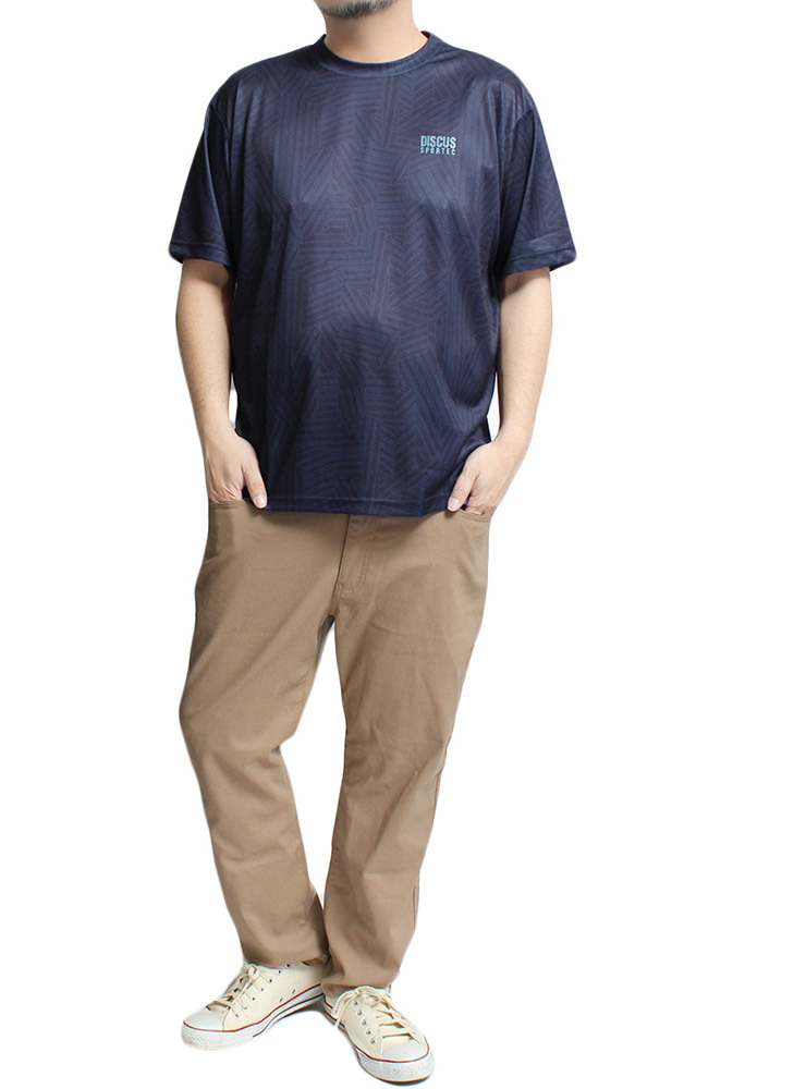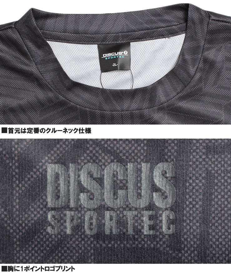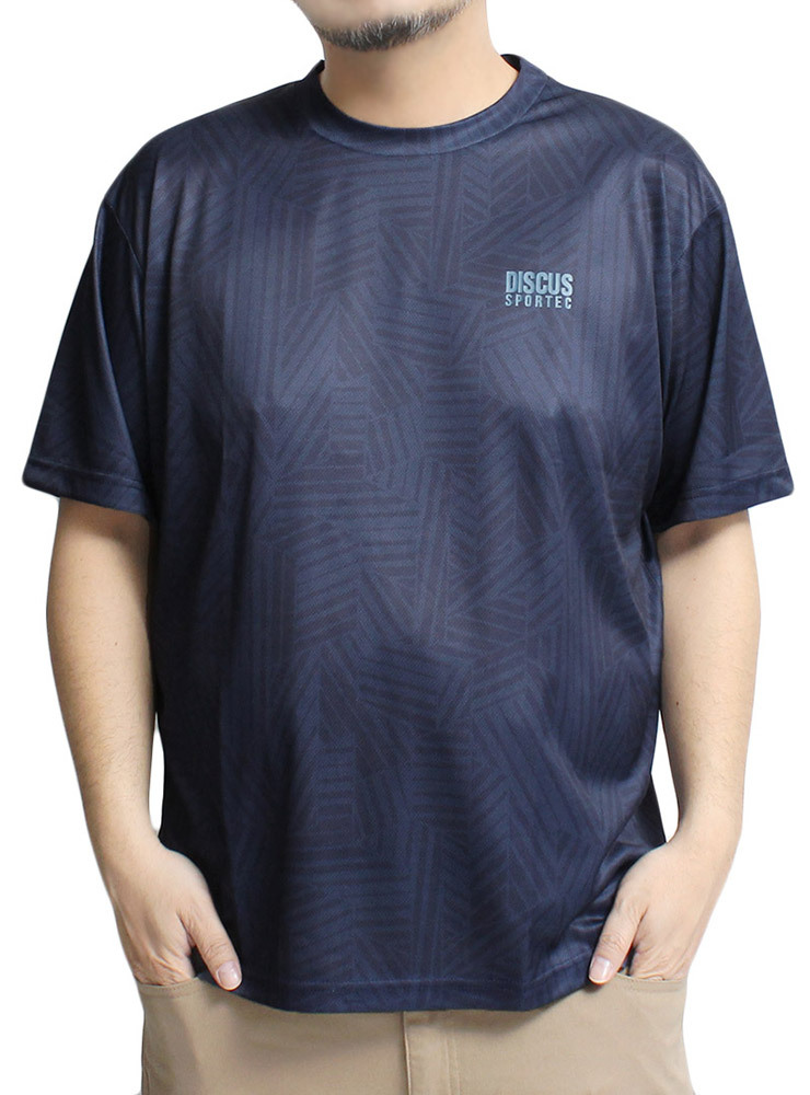 | 商品名 | 【新品】 2L ネイビー DISCUS ディスカス 半袖 Tシャツ メンズ 大きいサイズ 総柄 幾何学 ロゴ プリント ドライ メッシュ 吸汗速乾 カットソー |