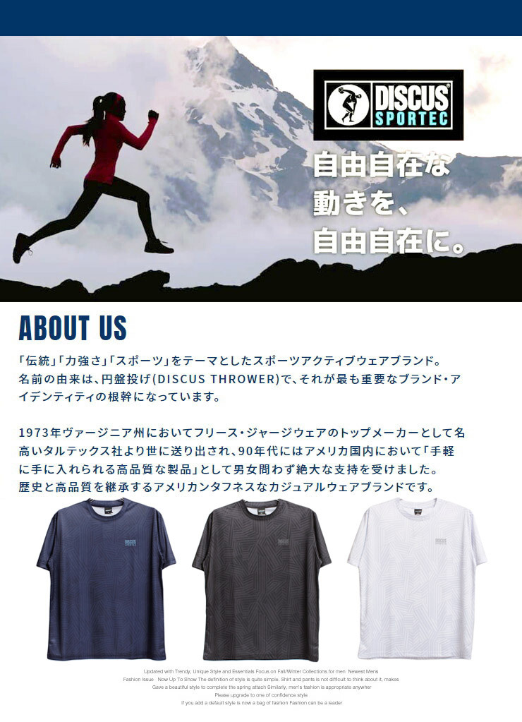 | 商品説明 | DISCUSより暑い時季におすすめの汗を吸ってもすぐに乾かすメッシュ素材を使用した、吸汗速乾性のあるドライ機能付き総柄プリントTシャツが入荷しました。 |