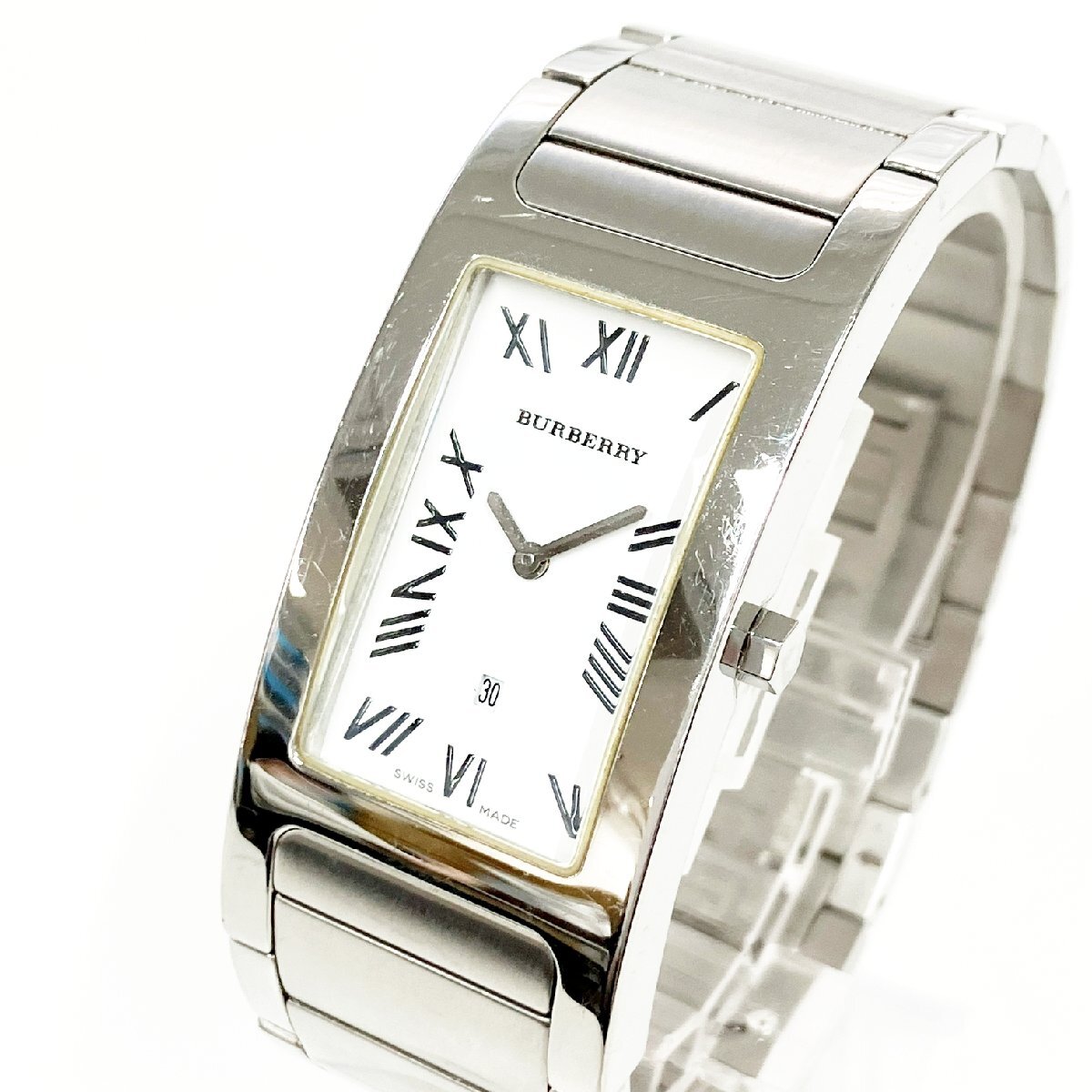 【1円スタート】【訳あり品】BURBERRY バーバリー 14000G SS ホワイト文字盤 クオーツ メンズ腕時計 486017