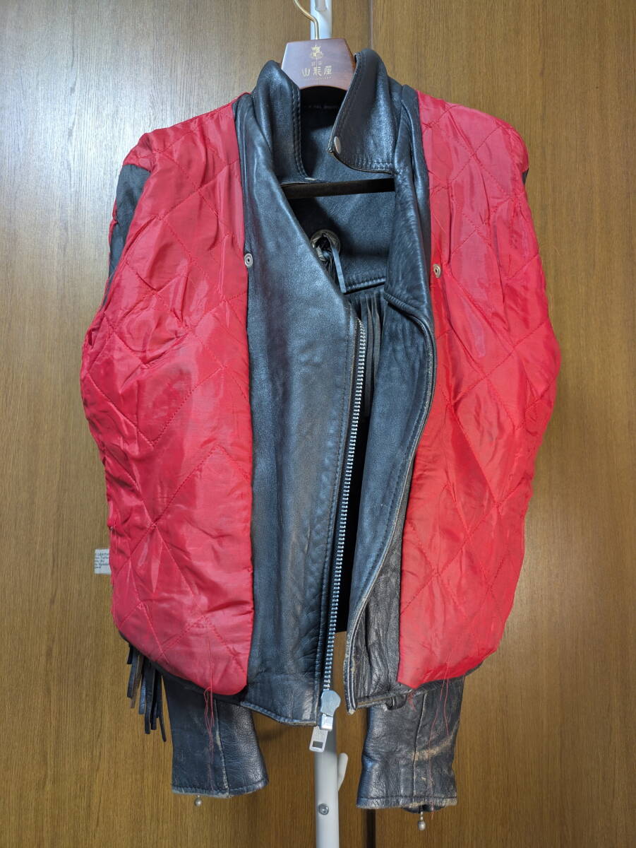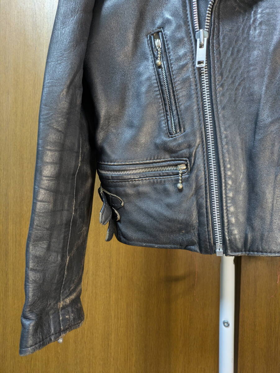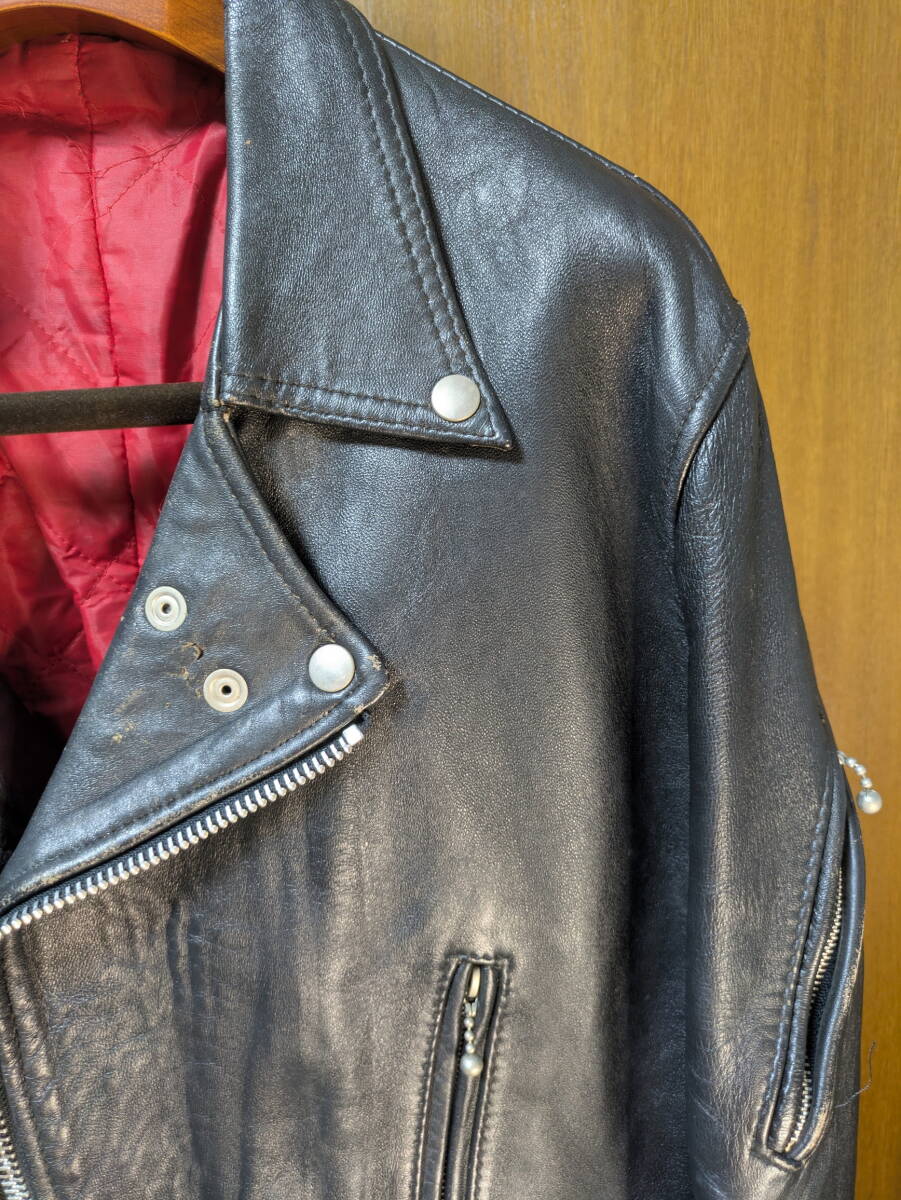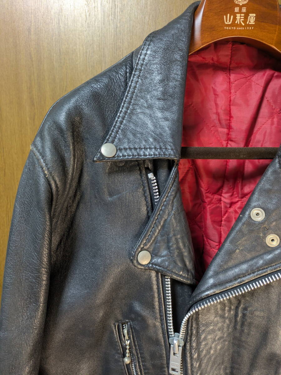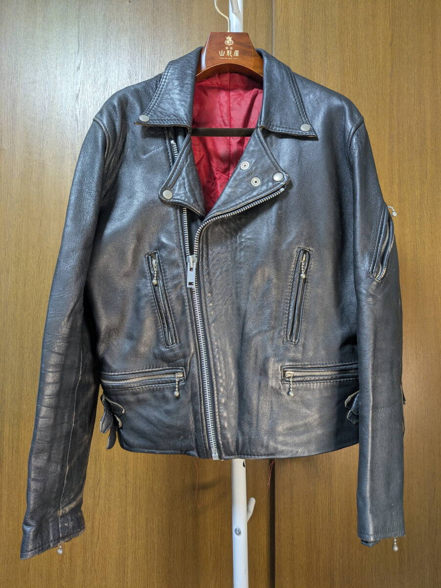 イングランド製のライダースジャケットになります。かなり大きいサイズで珍しいと思います。肉厚なシープレザーが使用されています。古い物なので使用感はありますが壊れている箇所もなく良い状態です。
