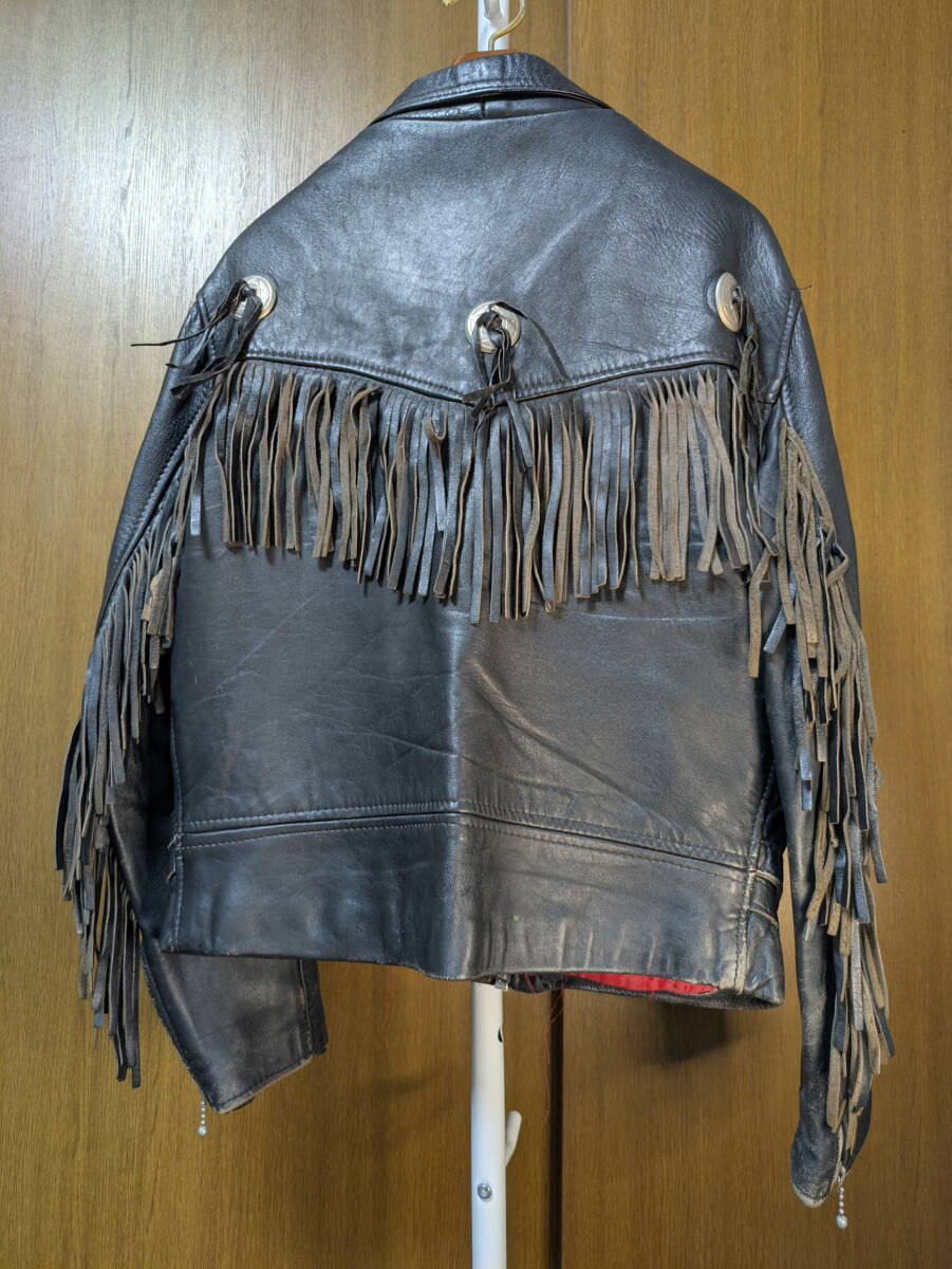 送料無料 英国製 ライダース フリンジ 特大 ヴィンテージ ロンジャン シープレザー