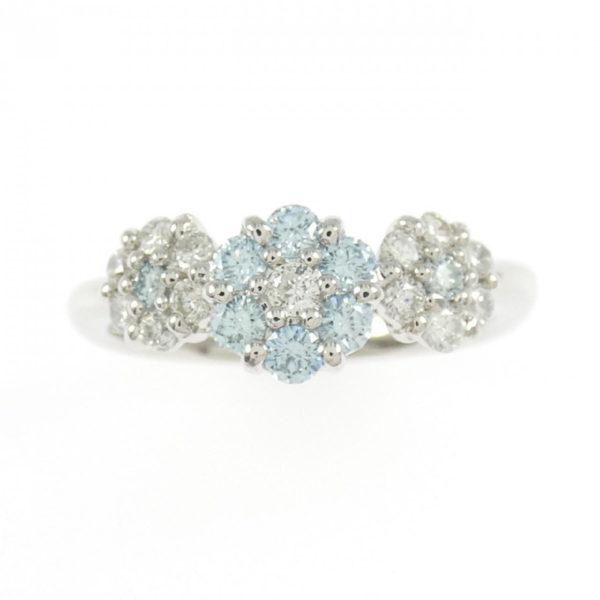 透明感のあるブルーダイヤモンドをフラワーモチーフにセッティング。指元を愛らしく飾ります。