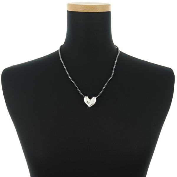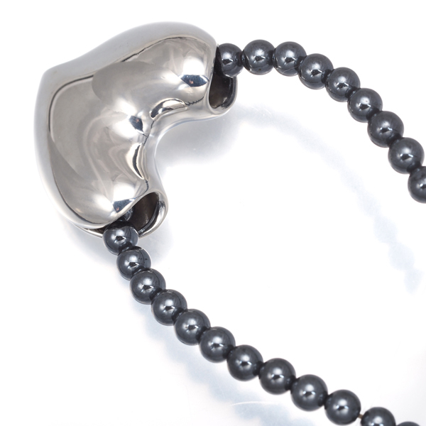 メタリックな光沢を魅せるヘマタイトの輝きを連ねたジョージジェンセンのネックレス。メインで輝く大ぶりなハートモチーフと共に胸元へ素敵なアクセントを与えてくれます。 |