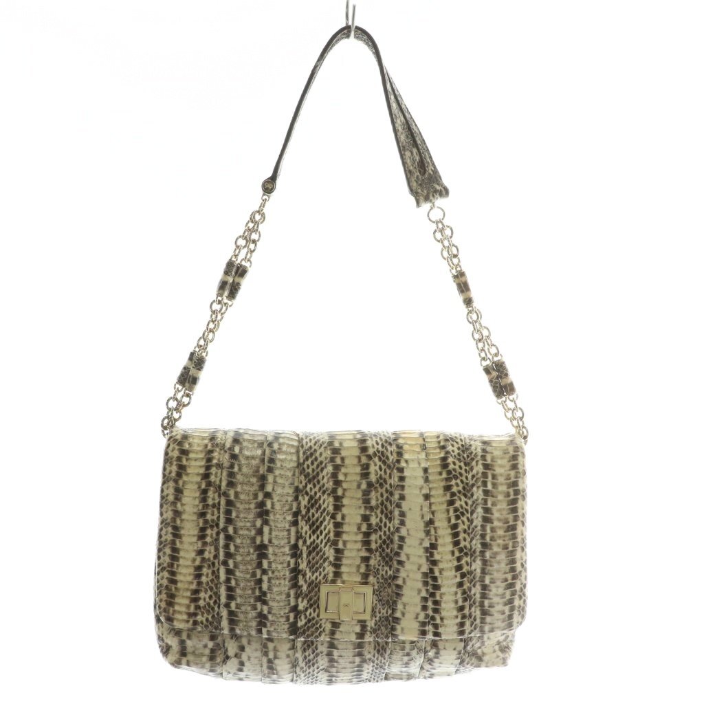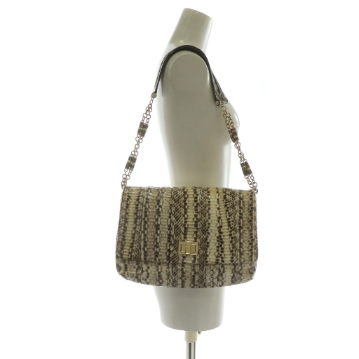 アニヤハインドマーチ ANYA HINDMARCH ワンショルダーバッグ ダイヤモンドパイソン ヘビ革 レザー ターンロック 茶色 ブラウン