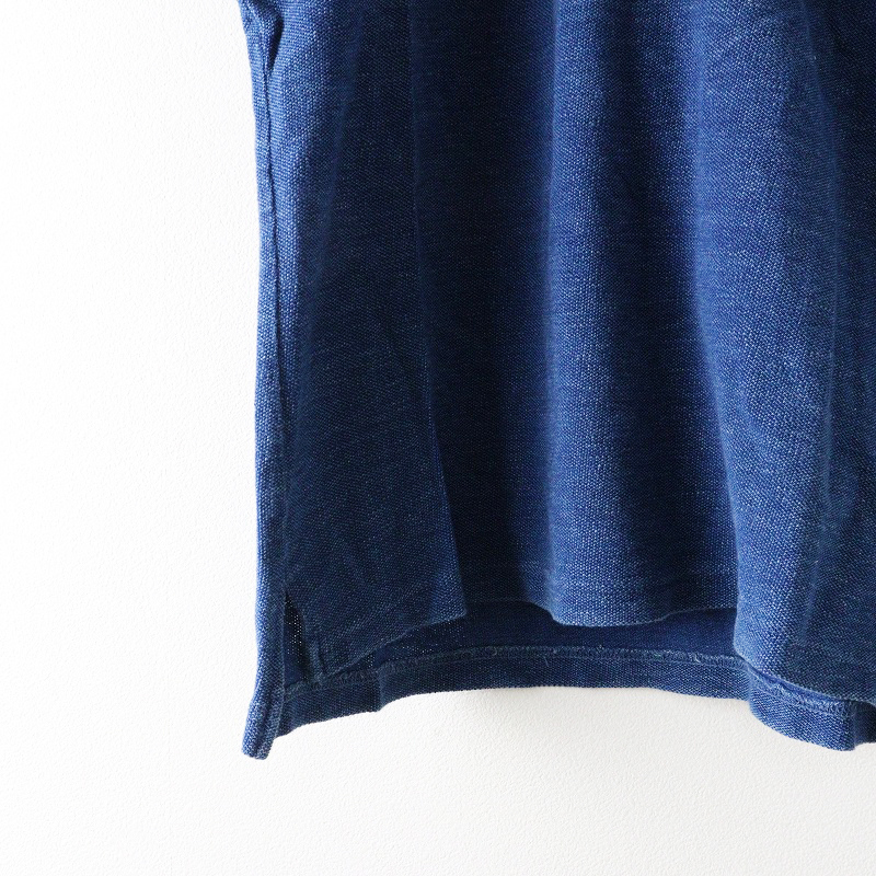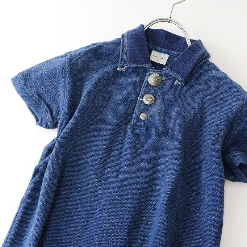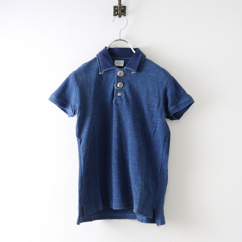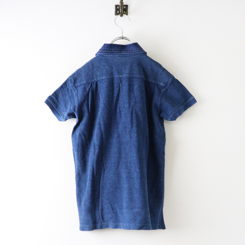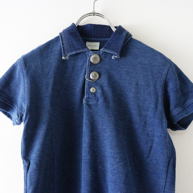 美品 キャピタル KAPITAL コンチョボタン 藍染 鹿の子 ポロシャツ 0|ブルー インディゴ 半袖 ブラウス カットソー【2400014612226】