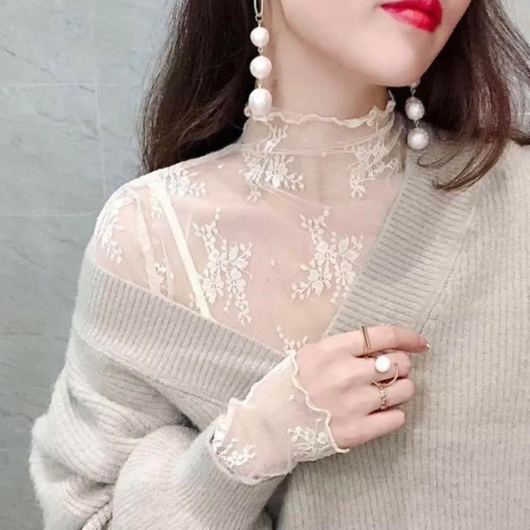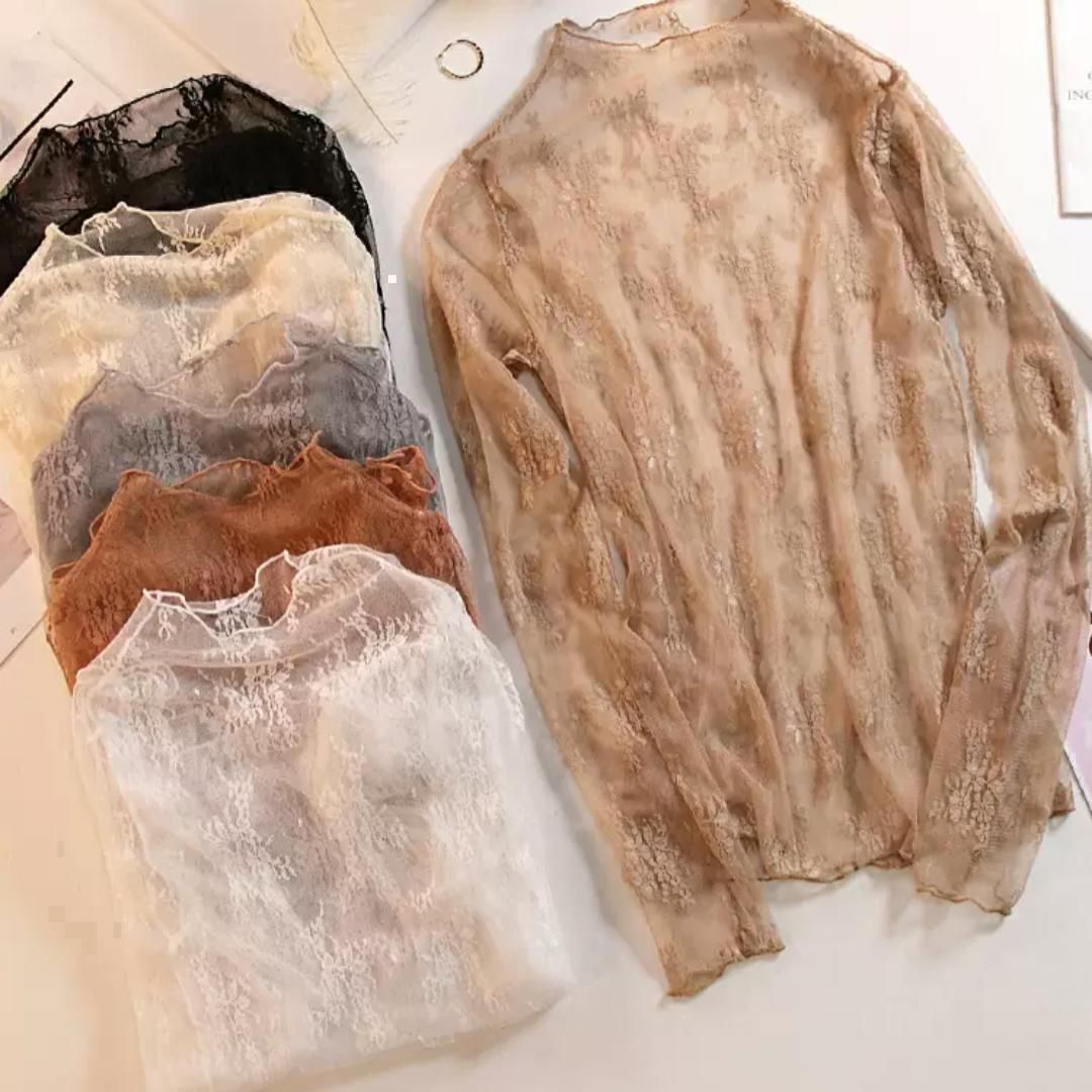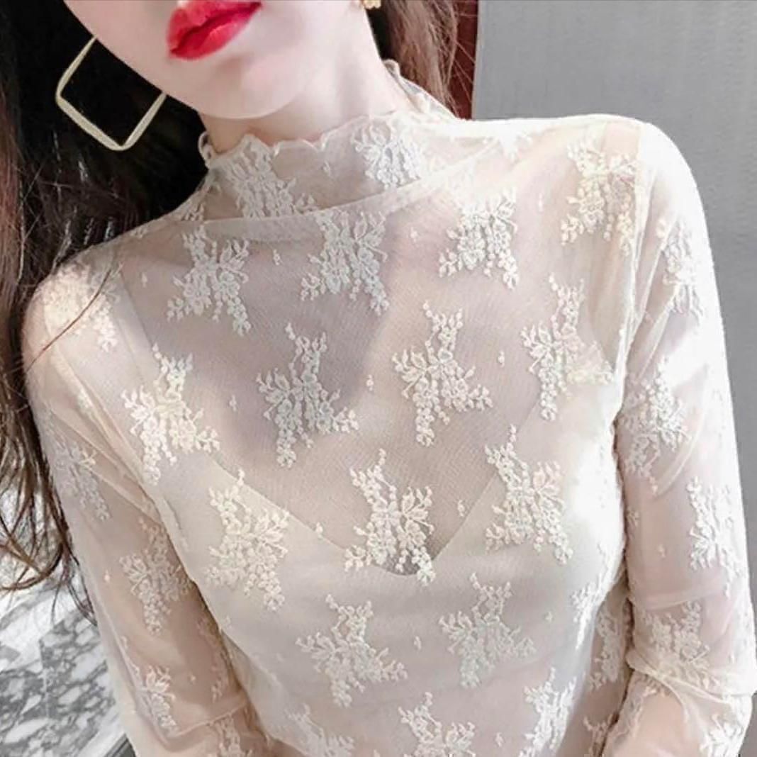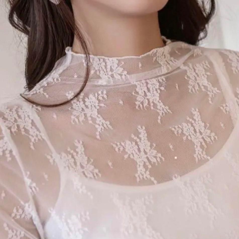オルチャン レースシアー インナートップス レイヤード 重ね着 レディーストップス 透け 刺繍 刺繍入り 肌見せ 透け感 エレガント 上品 フェミニン 大人可愛い かわいい フォーマル 韓国ファッション 長袖レース トップス レースインナ チュールトップス489