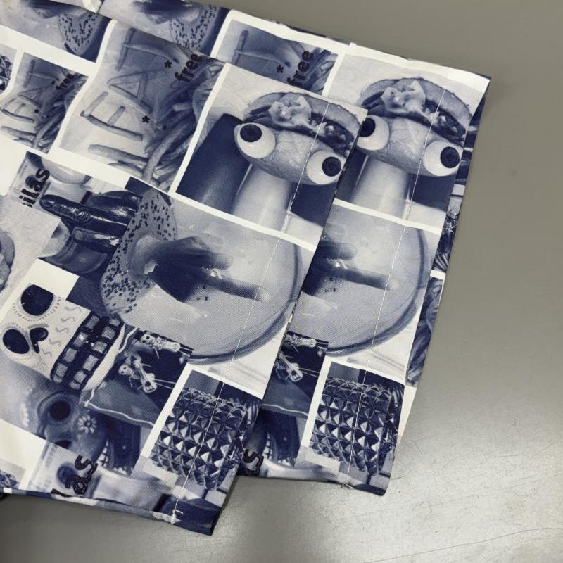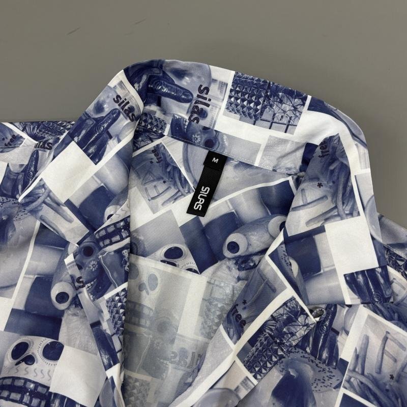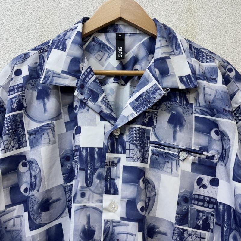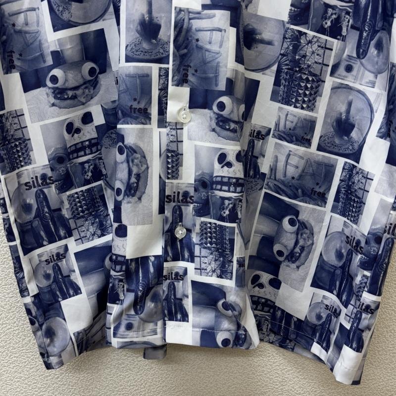サイラス 110232014006 バーガー スカル フォトプリント 総柄 オープンカラー ボックス ナイロン 半袖 シャツ M