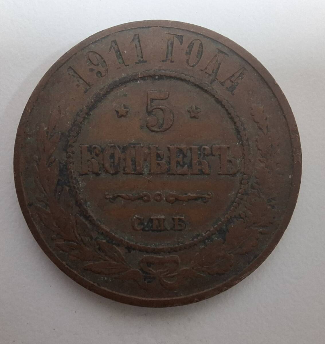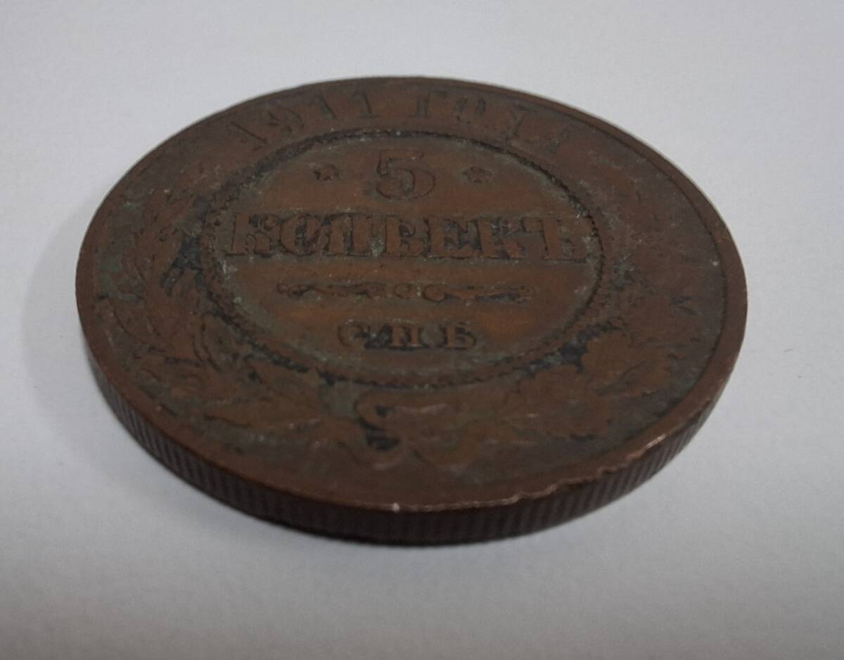 【超貴重・1911年】帝政ロシア末期 ニコライ2世 5コペイカ硬貨
