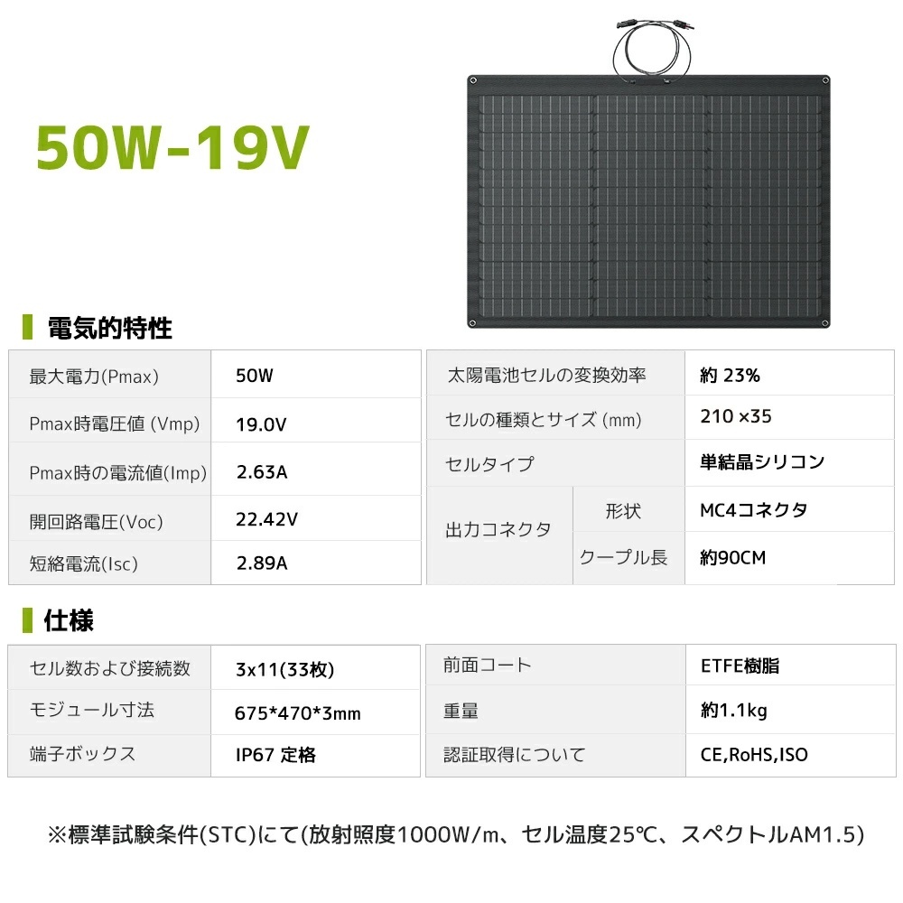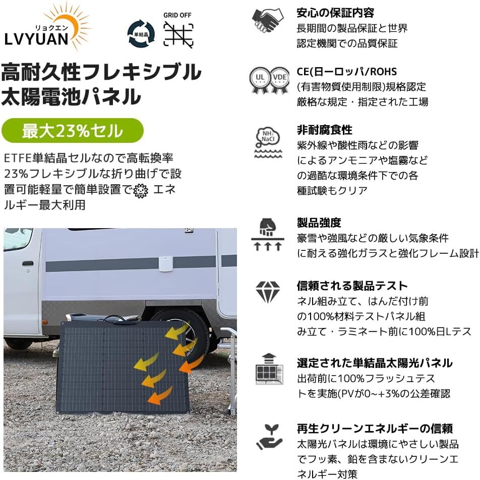 新品 単結晶 ETFE 据置型 50W 19V フレキシブルソーラーパネル 太陽光パネル 変換効率25% 50度曲げ可能 防水防塵 災害対策 超軽量 LVYUAN