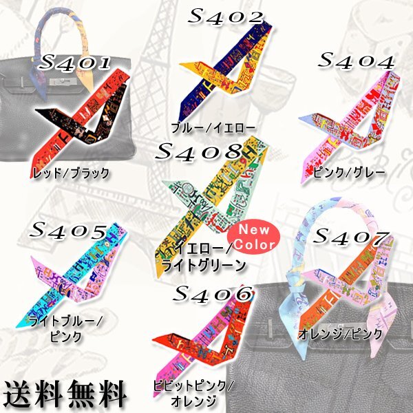 送料無料 万能 リボンスカーフH柄 選べるカラー 細長 ハンドル リボン タイスカーフ scarf