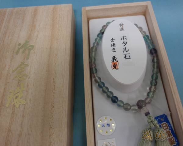 ◇25◇ ☆国産数珠☆特選 ホタル石 弥勒房☆蛍石☆念珠 桐箱入り 新品未使用【信頼のヤフオク!実績25年】☆